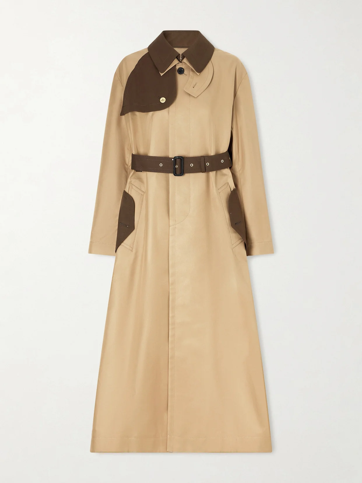 Belted Two-tone Cotton-blend Gabardine Trench Coat