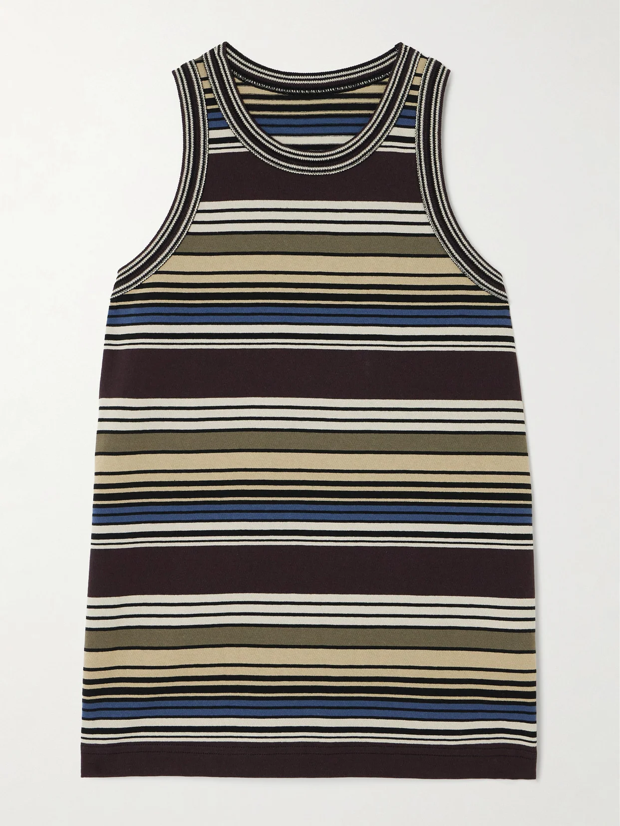 Designed to feel effortless yet intentional, Sacai's tank brings subtle distinction to an everyday silhouette. It's knitted from soft cotton with horizontal stripes in earthy tones and a streamlined, athletic cut. Style yours with tailored separates or relaxed denim.