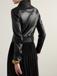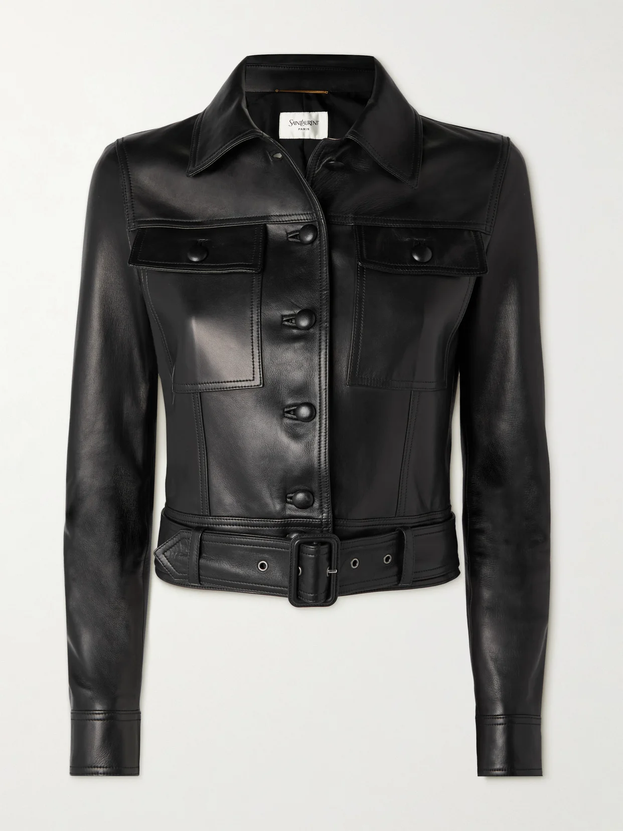 In recent seasons, SAINT LAURENT has been making some of the most sought-after leather jackets. This one demonstrates the label's mastery of the material, with strategic paneling and topstitching to contour the shape. It's fitted with a biker-style belt to define the slightly cropped hem.