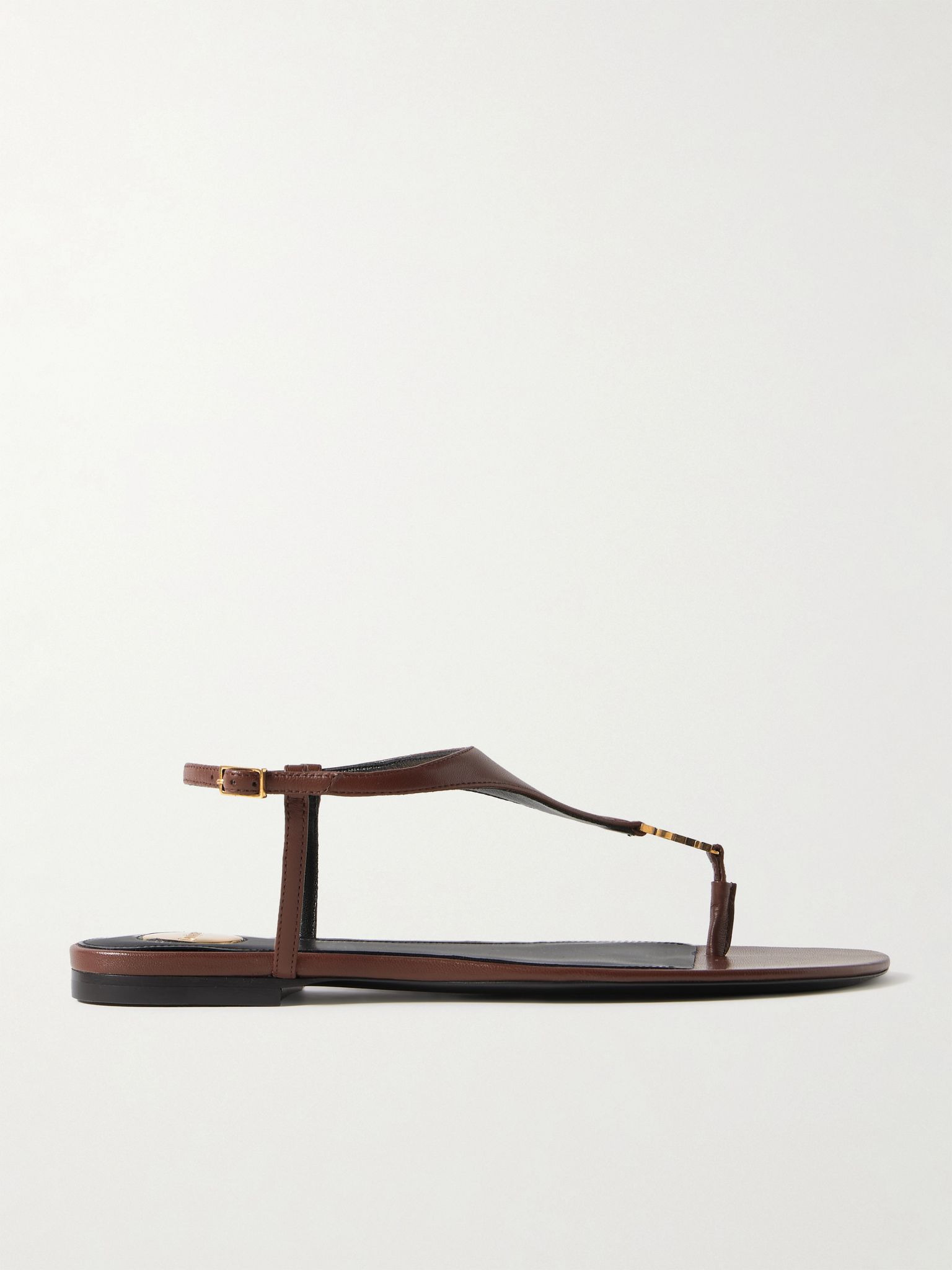 SAINT LAURENT's 'Cassandra' sandals have T-bar straps adorned with the label's signature 'YSL' plaque. They've been crafted in Italy from leather in a versatile brown shade. Size & Fit - Fits true to size, take your normal size - Italian sizing Details & Care - Slight heel - Brown leather (Calf) - Buckle-fastening slingback strap - Come in a presentation box