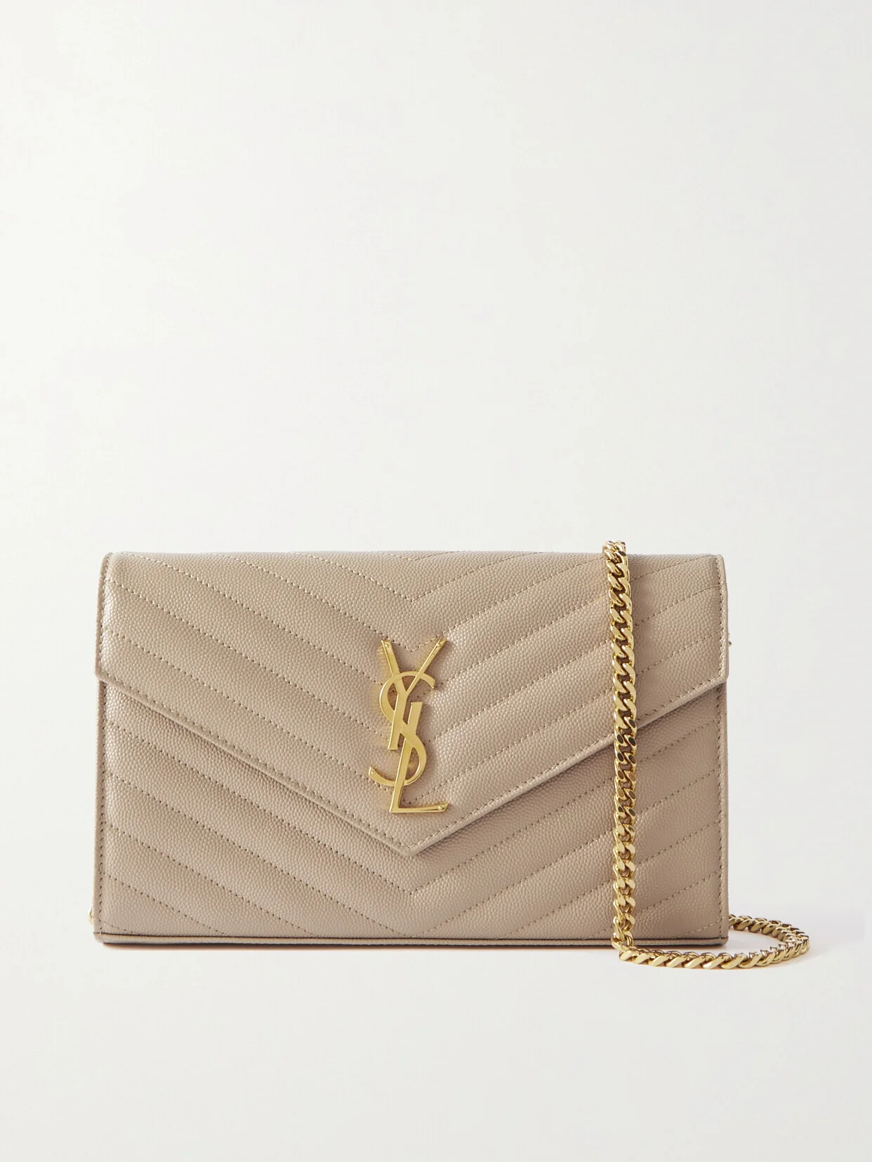 SAINT LAURENT's 'Cassandre' wallet has been made in Italy from matelasse textured-leather and punctuated with the brand's iconic 'YSL' plaque. It's fitted with a zipped compartment and 20 card slots. Detach the chain strap to carry it as a clutch.