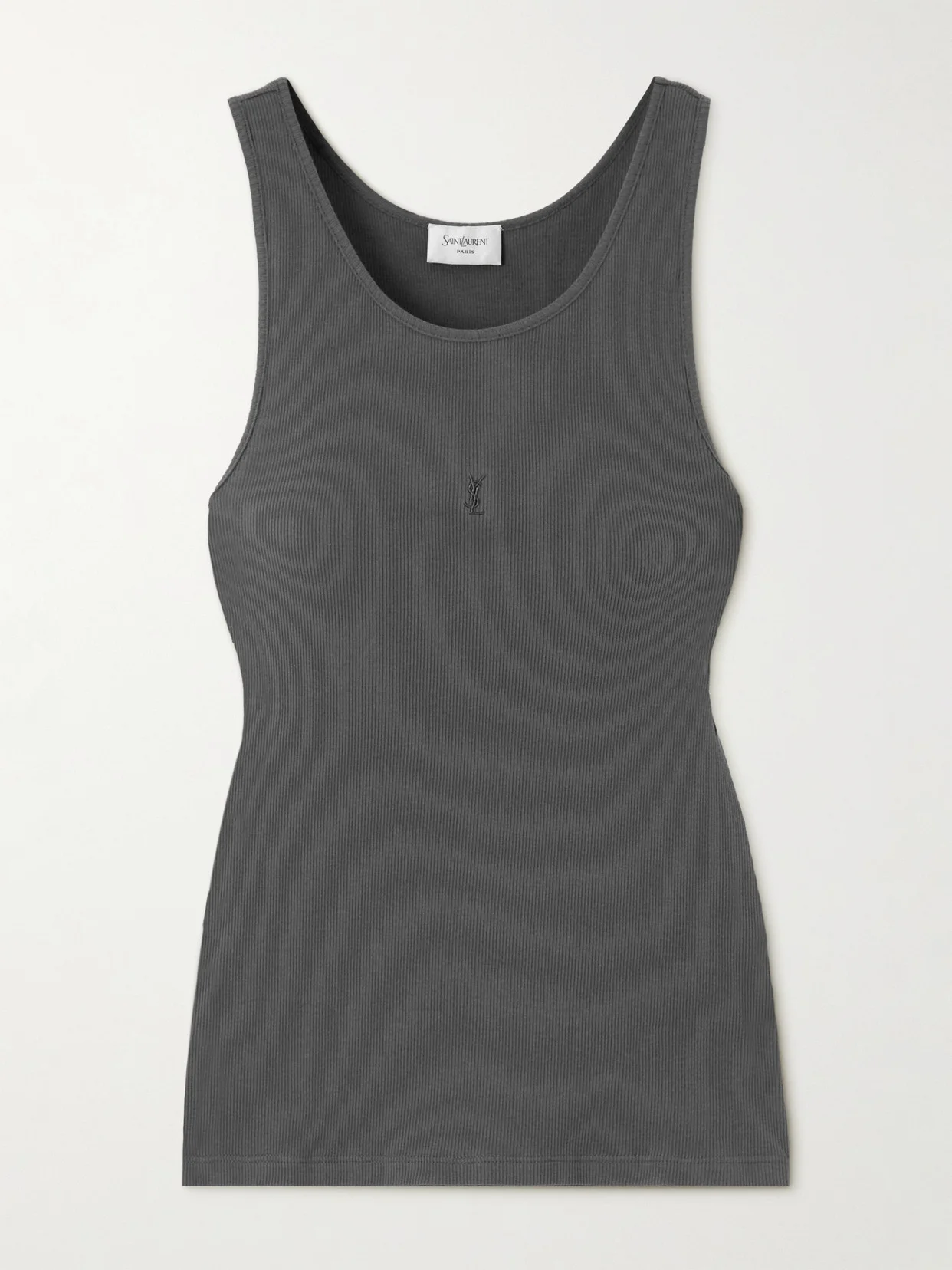 A house signature since the early '60s, SAINT LAURENT's 'Cassandre' logo is embroidered front and center on this tank. It's made from cotton-jersey and lightly ribbed to enhance the slim fit.