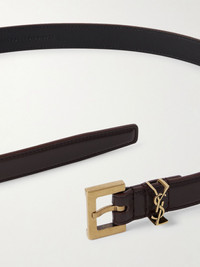 The prong on SAINT LAURENT's 'Cassandre' belt is delicately carved to form the house's iconic 'YSL' monogram. It's been made in Italy from soft leather and cut in a slim 2cm width that'll work well with skinny jeans. Size & Fit - Designed to be worn on the hips or waist - Measurements can be found in the link below Details & Care - Burgundy leather (Calf) - Buckle fastening
