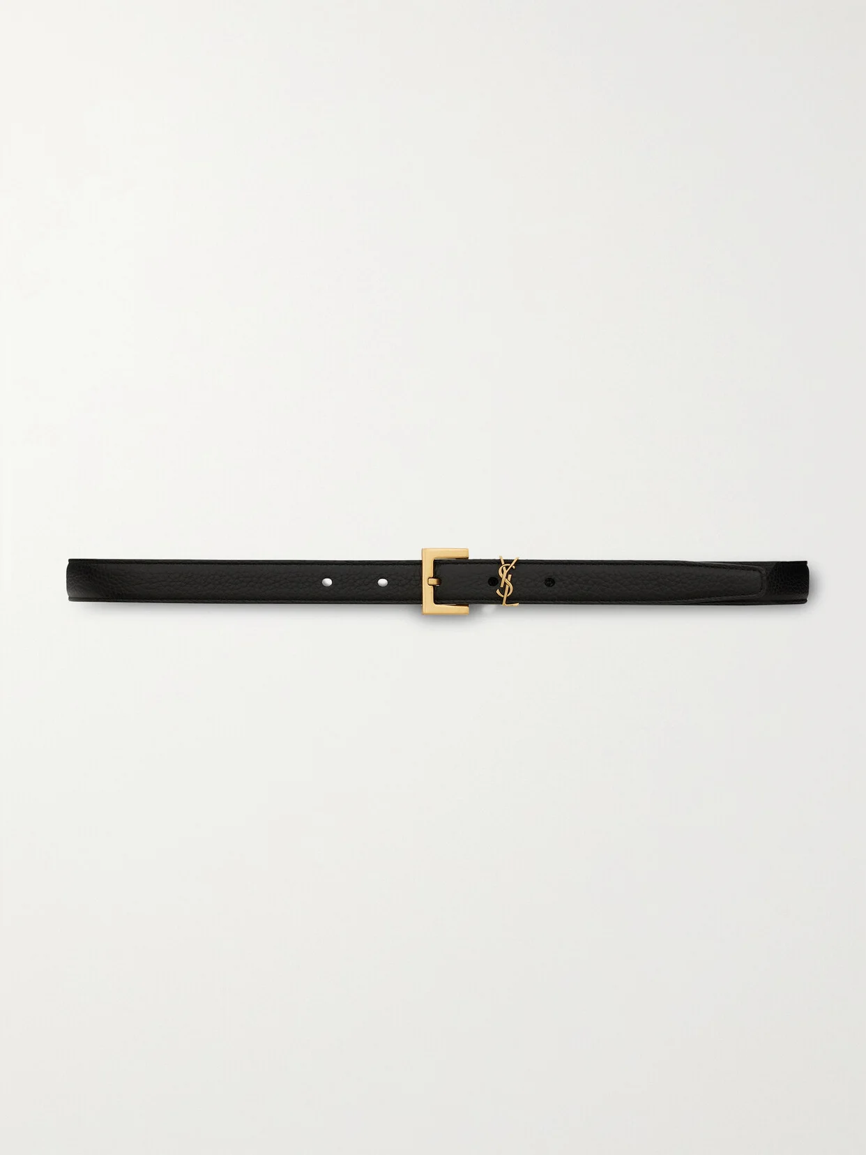 SAINT LAURENT's 'YSL' monogram was created in 1961 by the Ukrainian-French commercial poster artist Cassandre - little did he know, it would become one of the most iconic logos in fashion history. Made in Italy from supple textured-leather, this 2cm 'Cassandre' belt is decorated with gold-tone hardware that makes it so easy to match with any outfit or jewelry.
