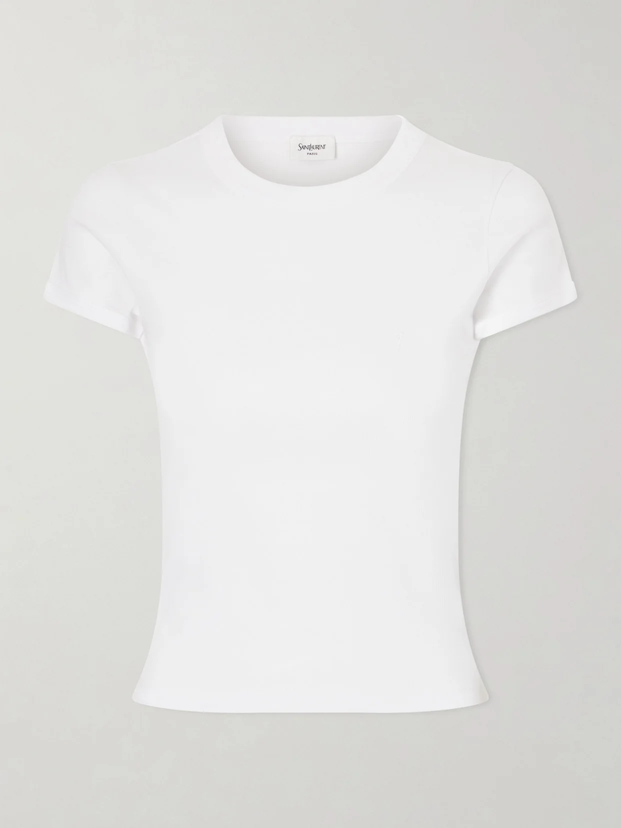 SAINT LAURENT's classic white T-shirt layers effortlessly beneath the label's signature tailoring. Cut from breathable jersey for a close fit, it reflects the maison's sleek approach to essentials.