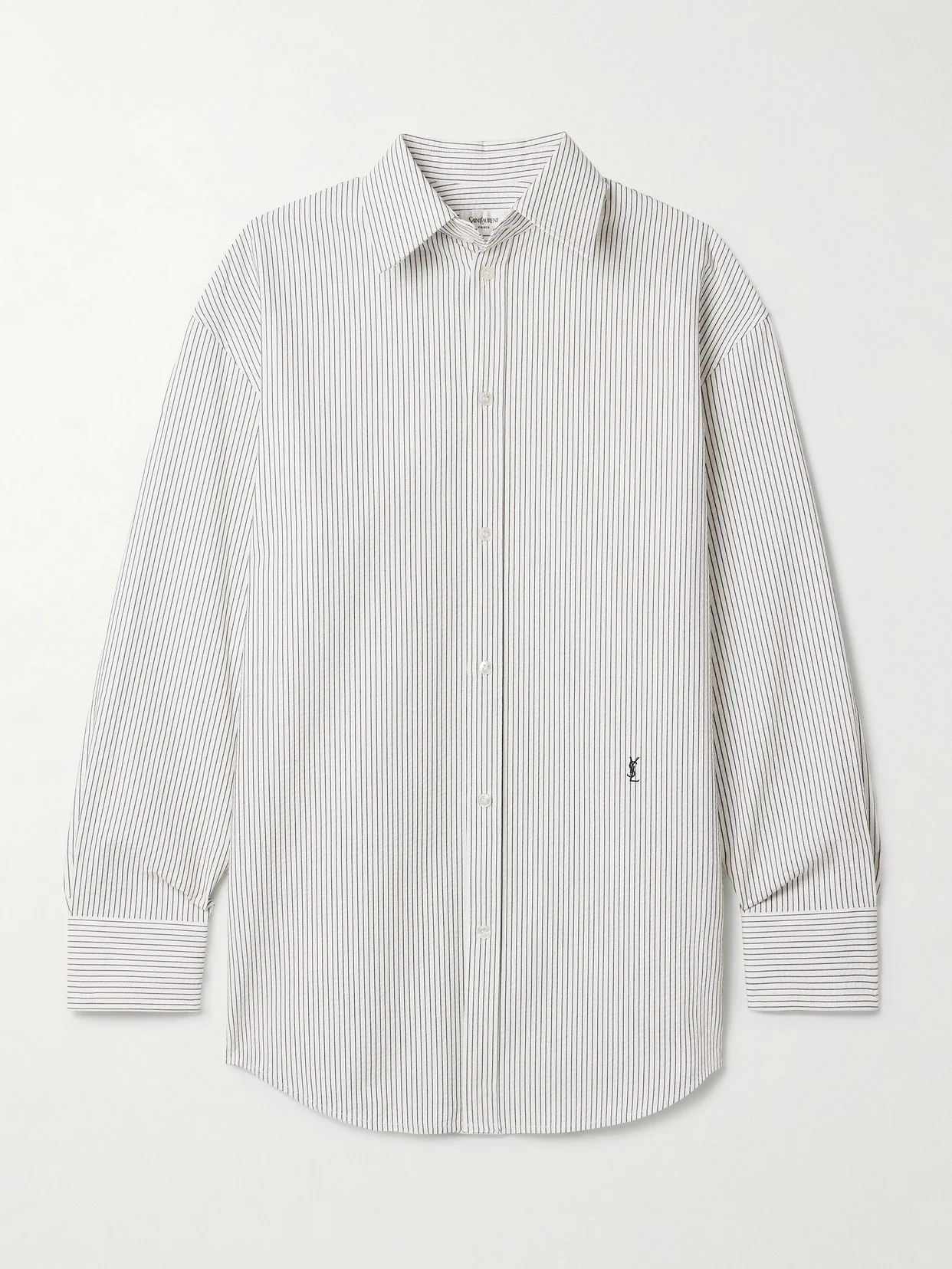 SAINT LAURENT's impeccable craftsmanship and quality materials ensure each design looks good for seasons to come. This shirt is made from cotton woven with slim, elongating stripes and features the logo embroidery - leave it untucked to show off the detail.