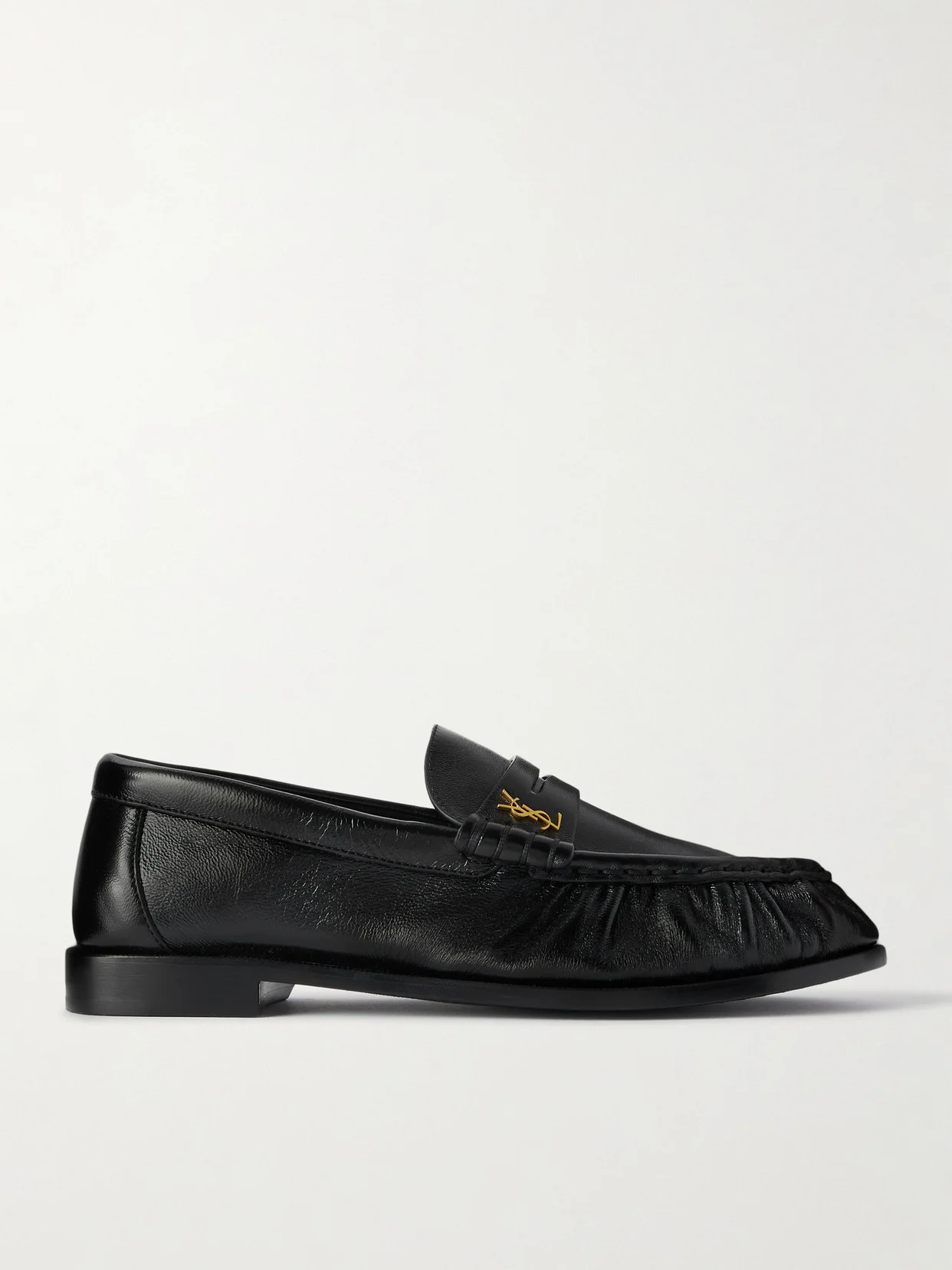 Penny loafers are classic for many reasons - they nail that tricky smart-casual dress code while being versatile and comfortable, too. SAINT LAURENT's pair has been made in Italy from supple leather and embellished with a gold 'Cassandre' plaque on the right side.
