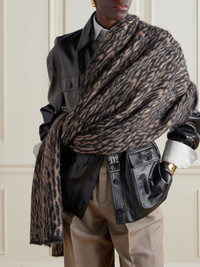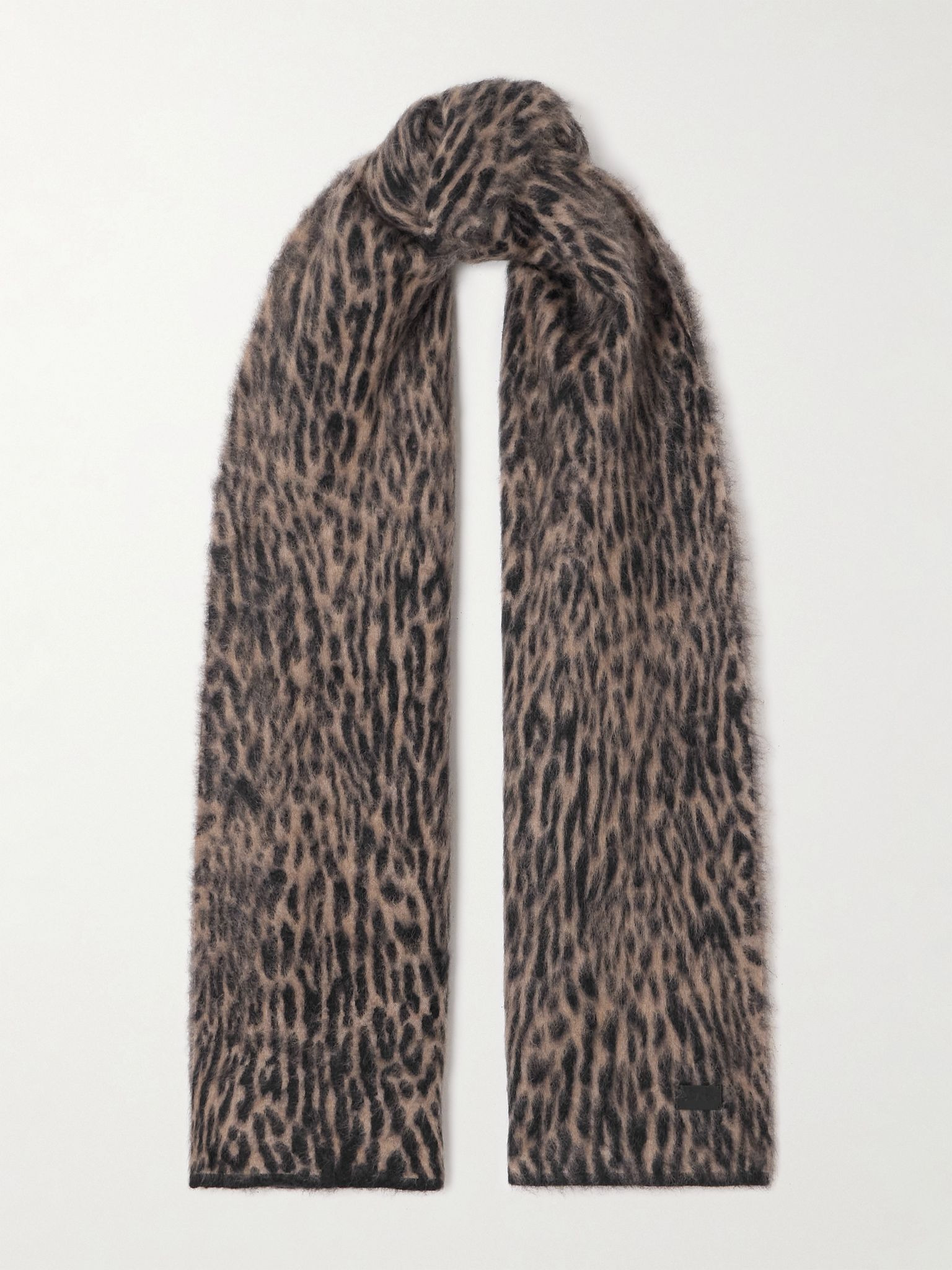 SAINT LAURENT's scarf is made from a mohair-blend with a soft, fuzzy handle that enhances the authentic look of the leopard pattern. It adds a bold edge to your outerwear and looks chic styled with neutral sweaters. Details & Care - Beige and black mohair-blend