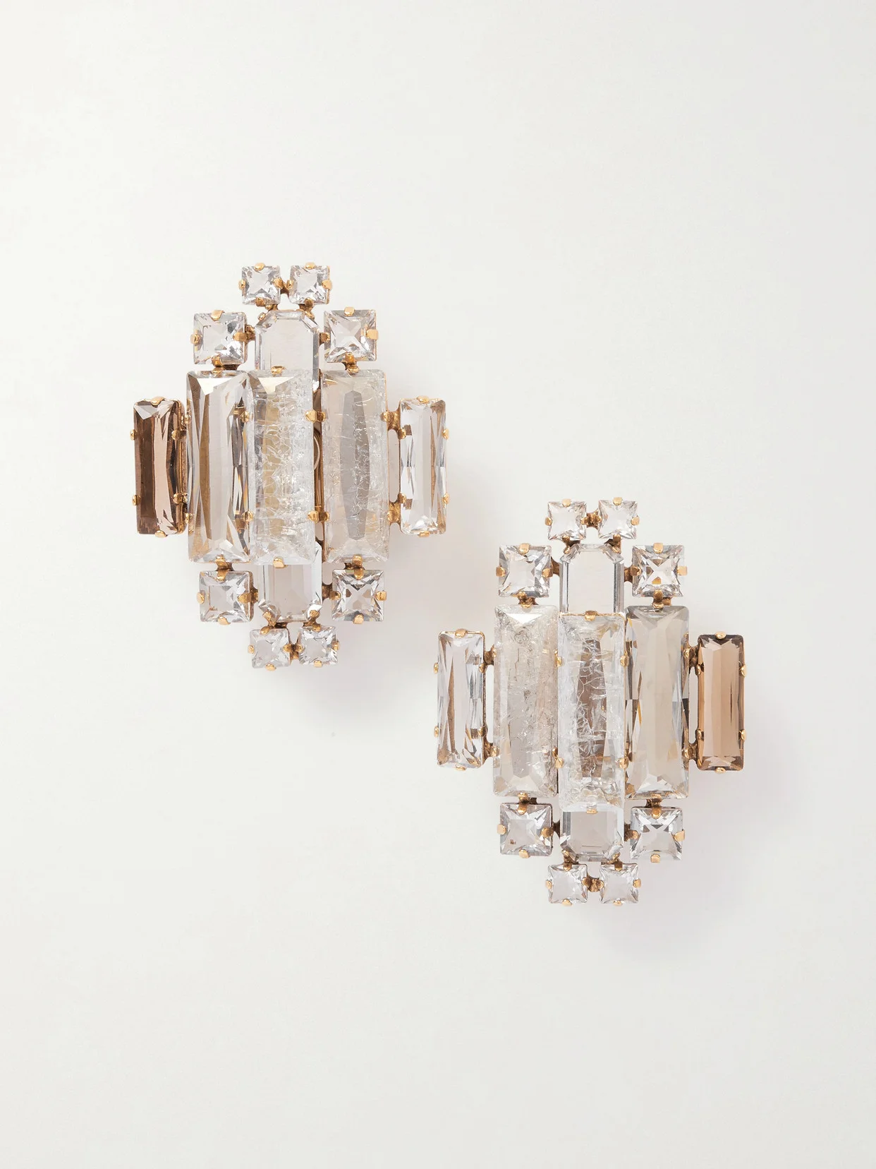 SAINT LAURENT's jewelry is always incredibly glamorous. Made from gold-tone metal, these 'Medallion' earrings are set with square- and emerald-cut crystals for oversized proportions. The clip fastenings are suitable for both those with or without pierced ears.