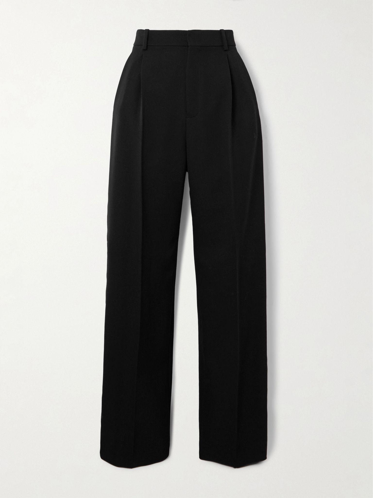 SAINT LAURENT’s impeccable tailoring will remain a reliable component of your wardrobe for years to come. These straight-leg pants are cut from grain de poudre wool that's pleated at the high waist. Style them with anything from chunky sweaters to collared shirts. Size & Fit - Fits true to size, take your normal size - High-rise, tailored for a straight-leg fit - Unfinished hems; can be altered to a suitable length - Mid-weight, non-stretchy fabric - Model is 175cm/ 5'9" and is wearing a FR 36 Model measurements: - Bust: 78cm/ 31" - Waist: 62cm/ 24.5" - Hip: 92cm/ 36" Details & Care - Black grain de poudre wool - Concealed hook, button and zip fastening at front - 100% wool - Dry clean