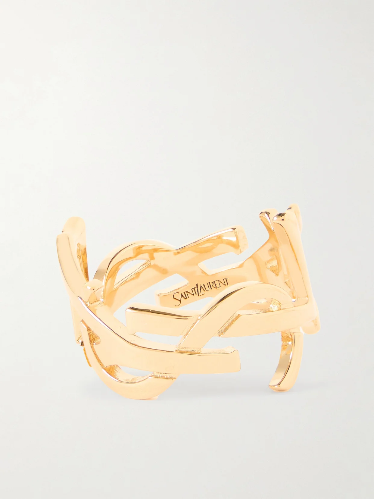 Designed by graphic artist Cassandre, SAINT LAURENT's interlocking ‘YSL' logo has been an icon of the house since its debut in 1961. This ring is cast from gold-tone metal and polished to a high shine.
