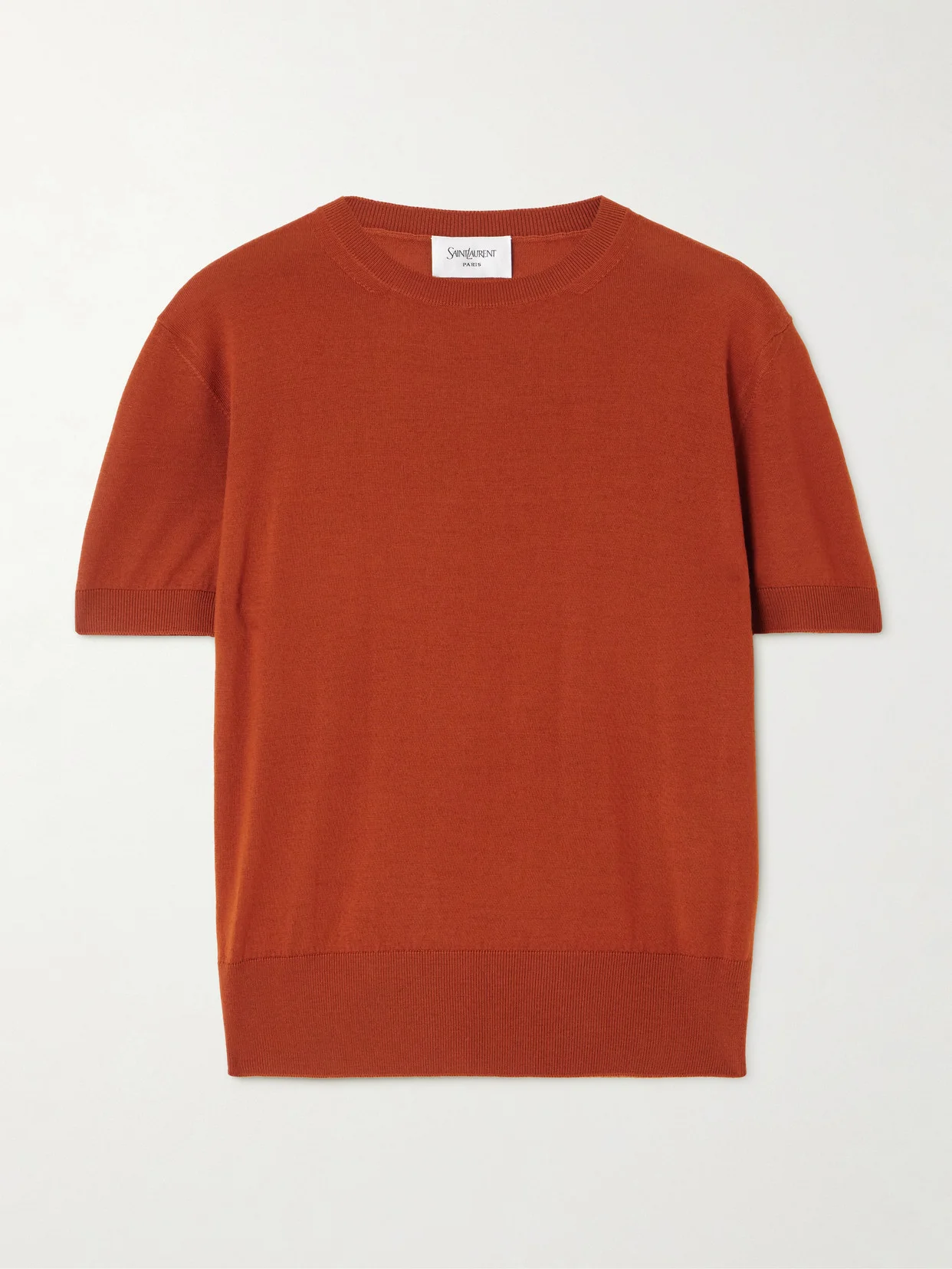 SAINT LAURENT's T-shirt is knitted from extra-fine wool, providing an almost weightless feel. It's been made in Italy and has ribbed trims that define the crew neckline, hem and short sleeves.
