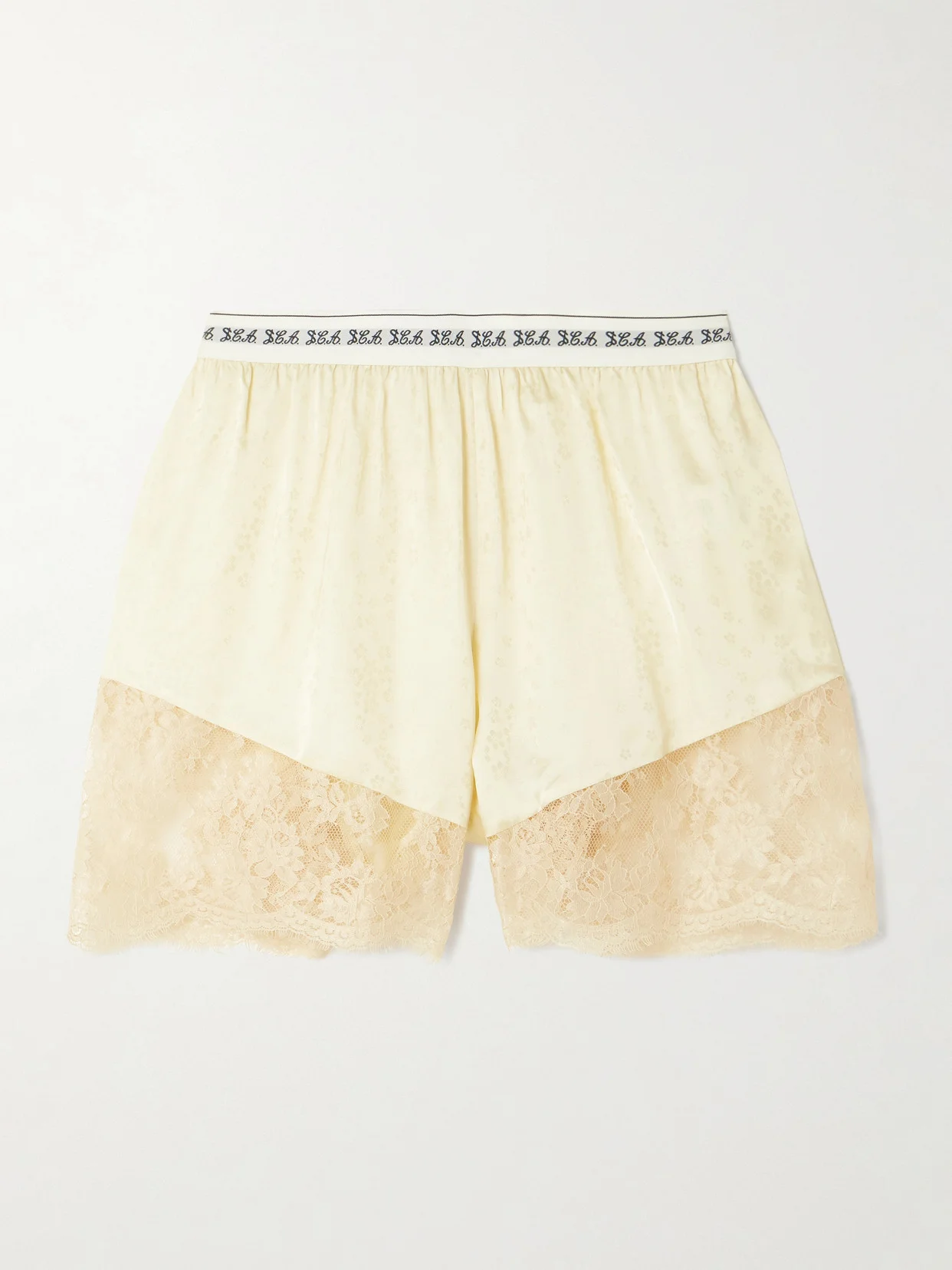 Sea's 'Ethel' shorts reference traditional bloomers of the 19th century. Made from fluid satin, they're jacquard-woven with florals and have relaxed legs trimmed with delicate lace. The elasticated waistband lends a contemporary feel.