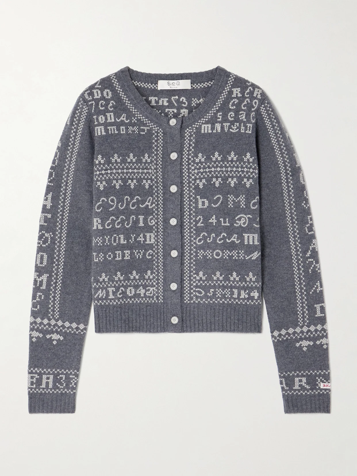 The mismatch embroidery on Sea's 'Kit' cardigan is inspired by vintage cross-stitch. It's knitted from soft wool framed by ribbed trims. The crew neckline looks best layered over a simple tee.
