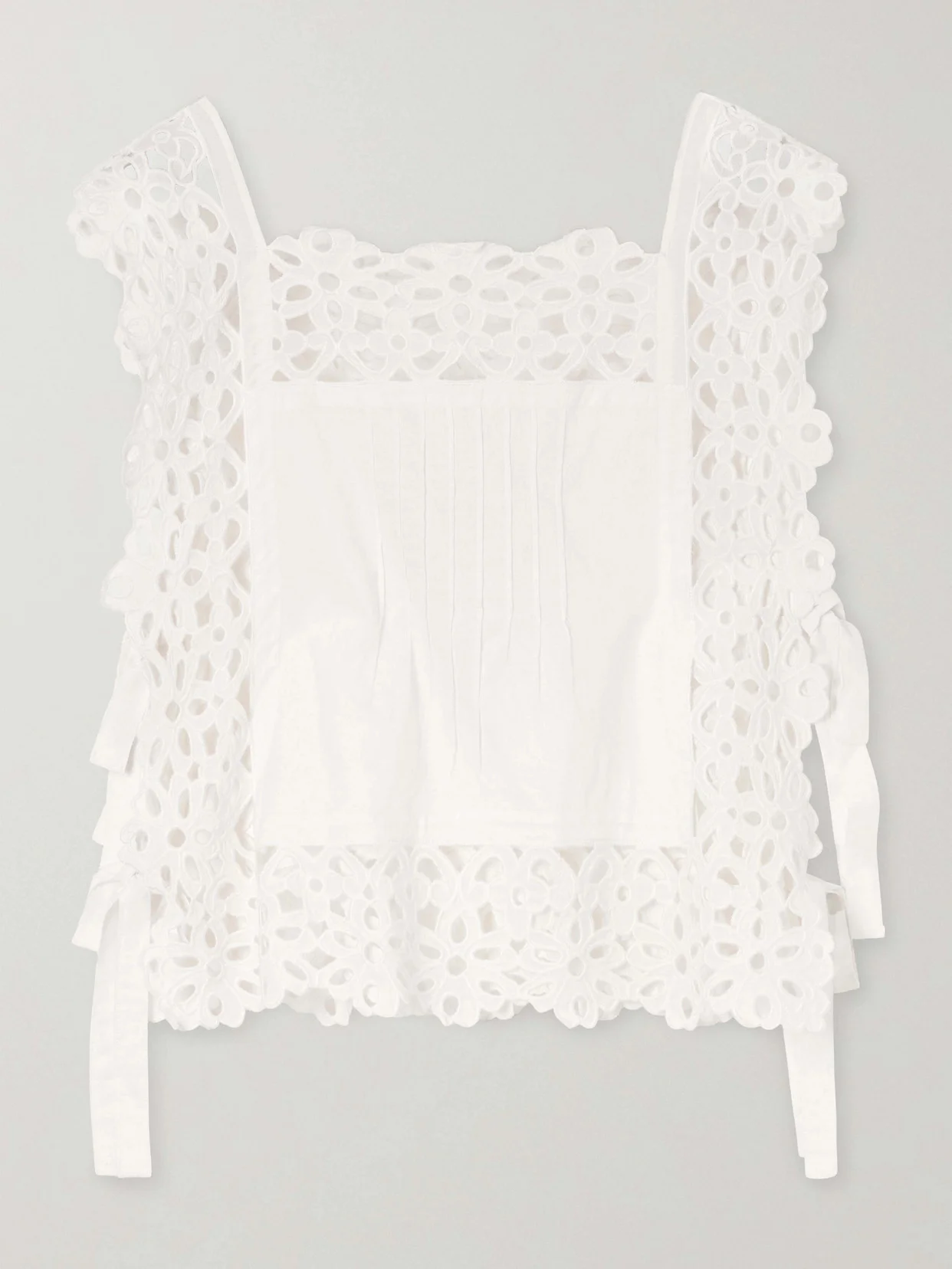 Leila Bow-embellished Broderie Anglaise-trimmed Cotton Top