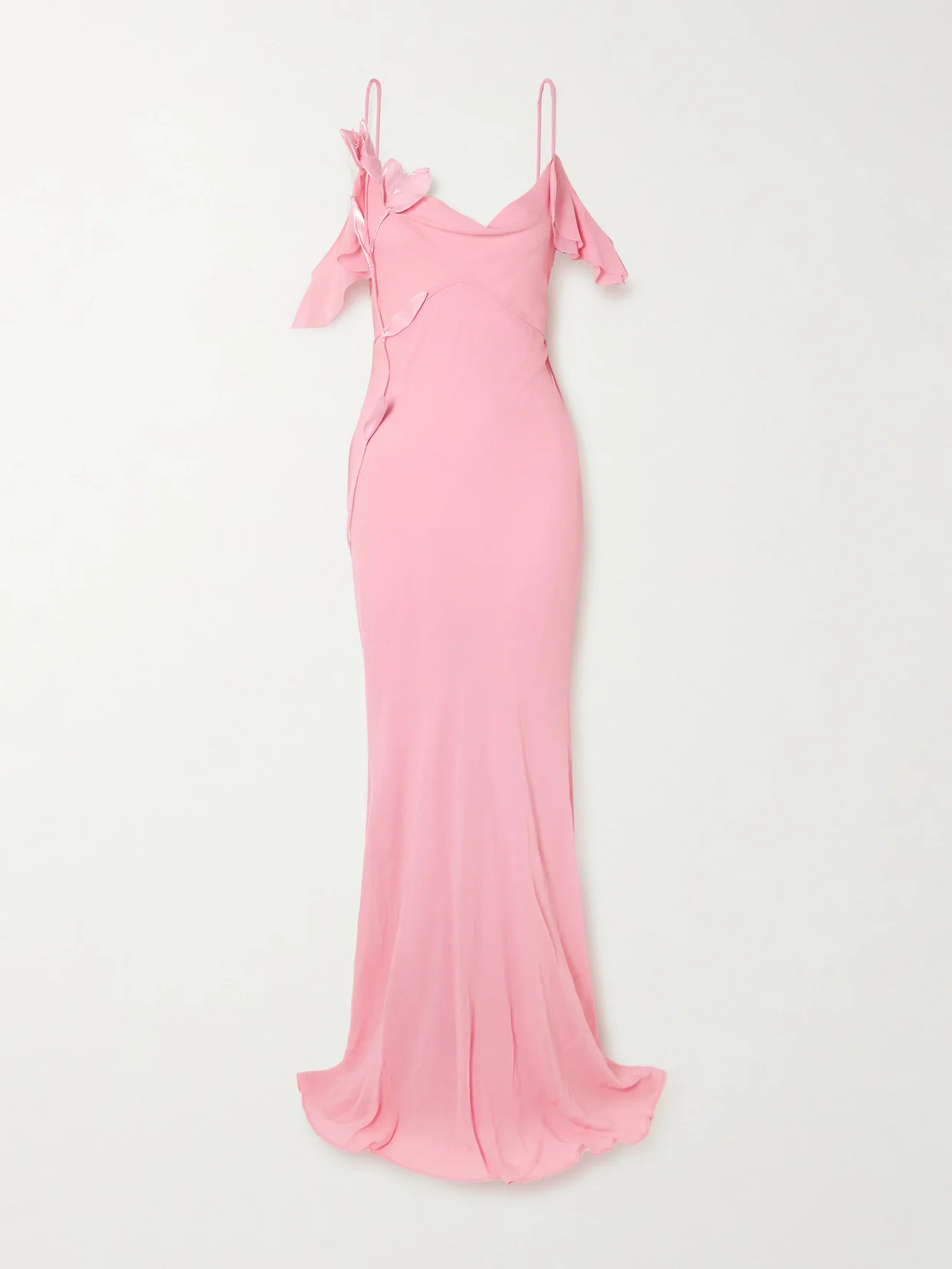 Appliquéd Ruffled Cold-shoulder Georgette Maxi Dress