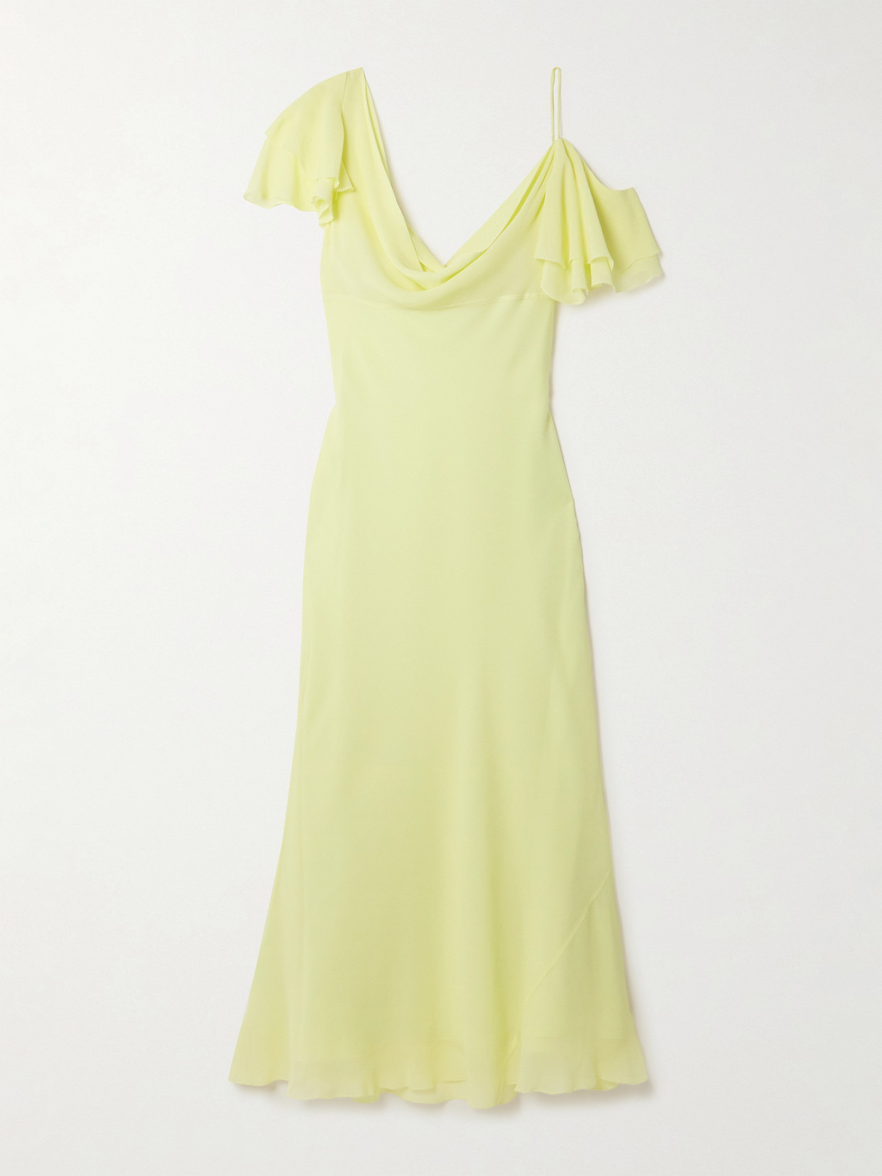 Asymmetric Ruffled Draped Georgette Midi Dress
