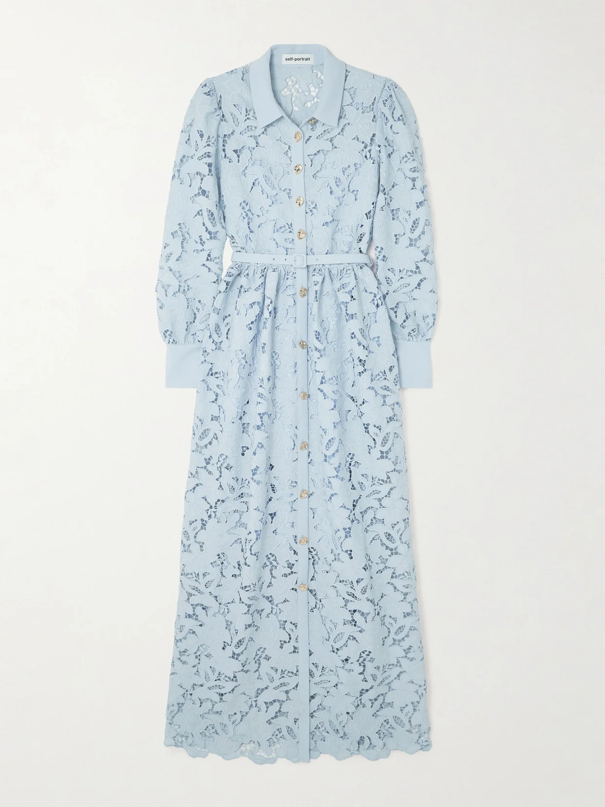 Self-Portrait's maxi dress is a beautiful choice for weddings or special dinners. Cut from corded lace and underpinned with a tonal slip for coverage, it has a neat pointed collar, scalloped hem and cinches at the waist with a sleek belt. Complement the sculptural gold-tone buttons with metallic accessories.