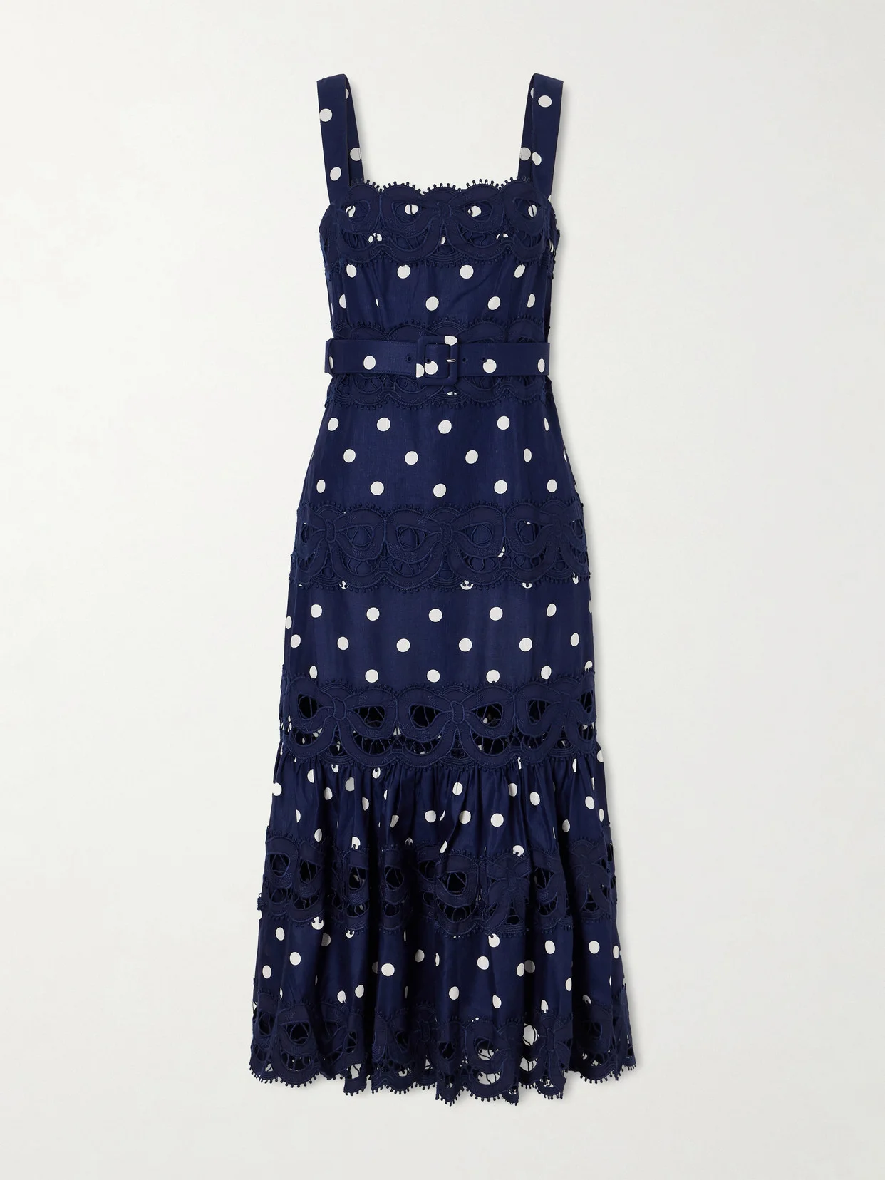 Belted Polka-dot Linen And Cotton-blend Midi Dress