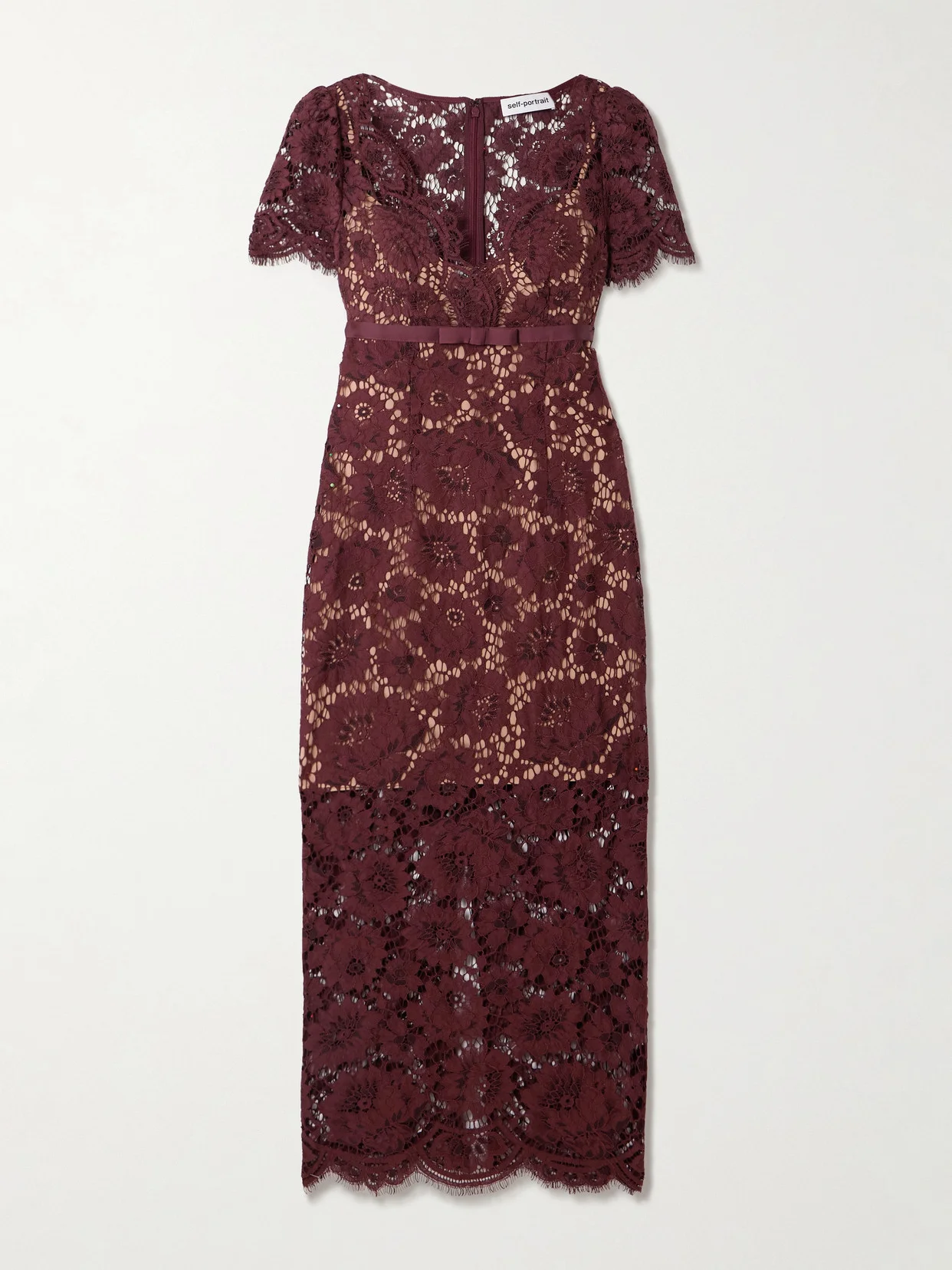 Self-Portrait's elegant dresses are always just perfect for events. Made from floral lace, this midi is adorned with a sweet satin bow below the bust and has pretty scalloped trims along the V-neckline, hem and sleeves. The slip lining through the body can also be detached if you prefer.