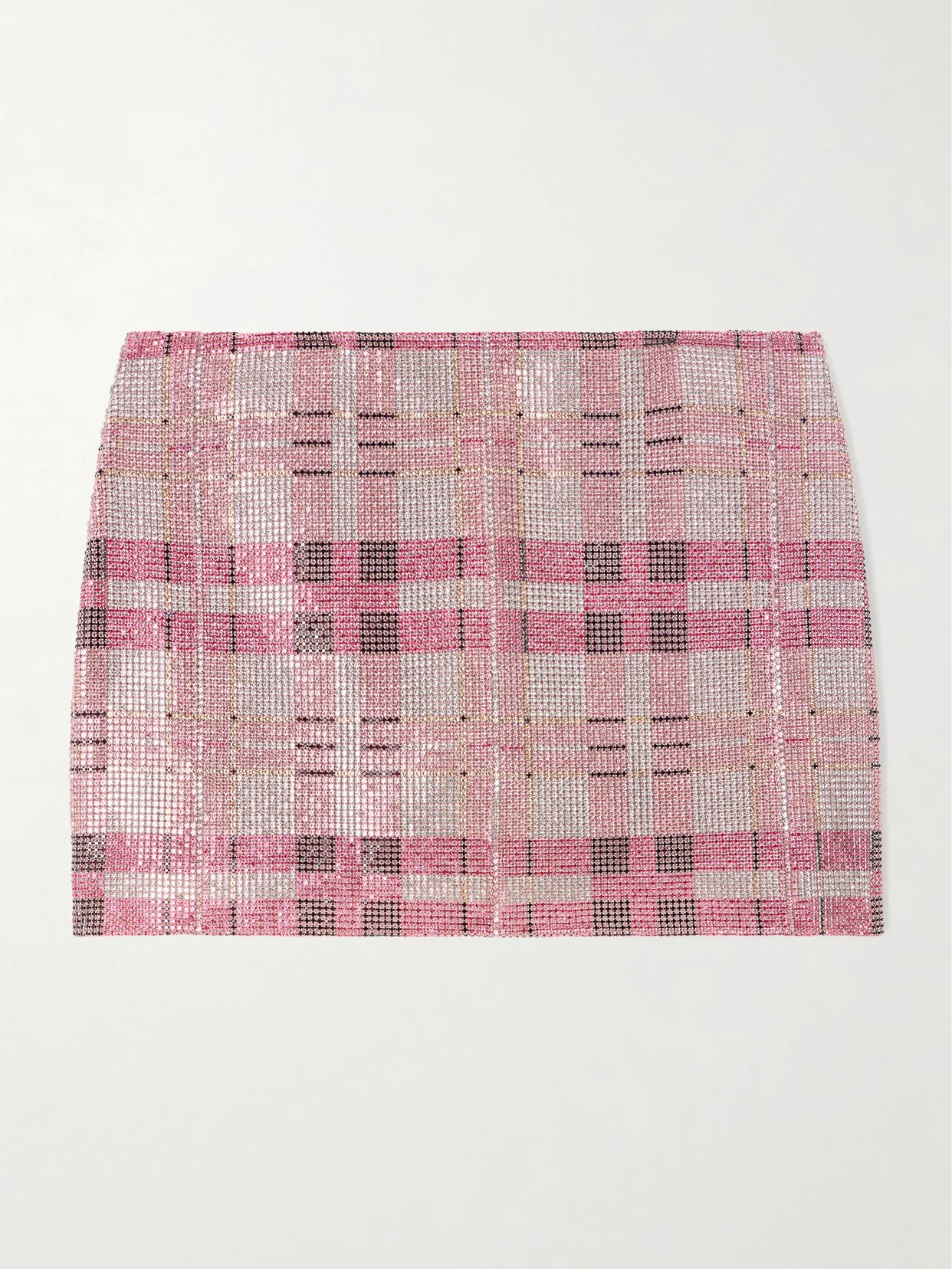 Checked Crystal And Chainmail-embellished Faille Mini Skirt