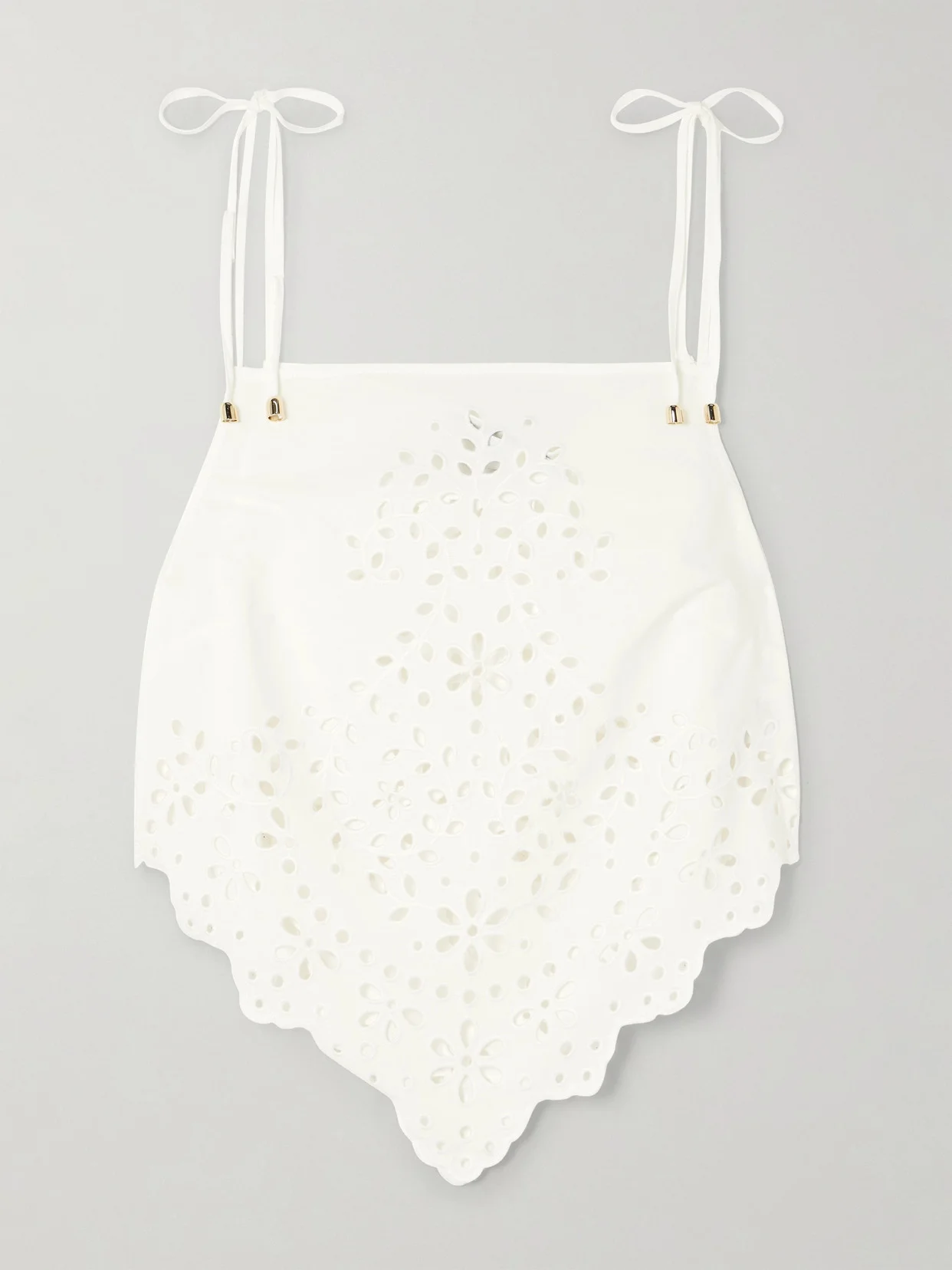 Self-Portrait's camisole is part of a coordinating set - when styled with the matching skirt, it resembles a chic cutout dress. From the Resort '25 collection, it's made from lightweight broderie anglaise cotton and has a scalloped handkerchief hem.