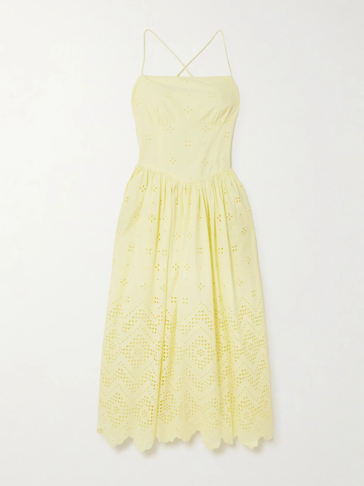 Drawstring Broderie Anglaise Cotton Midi Dress