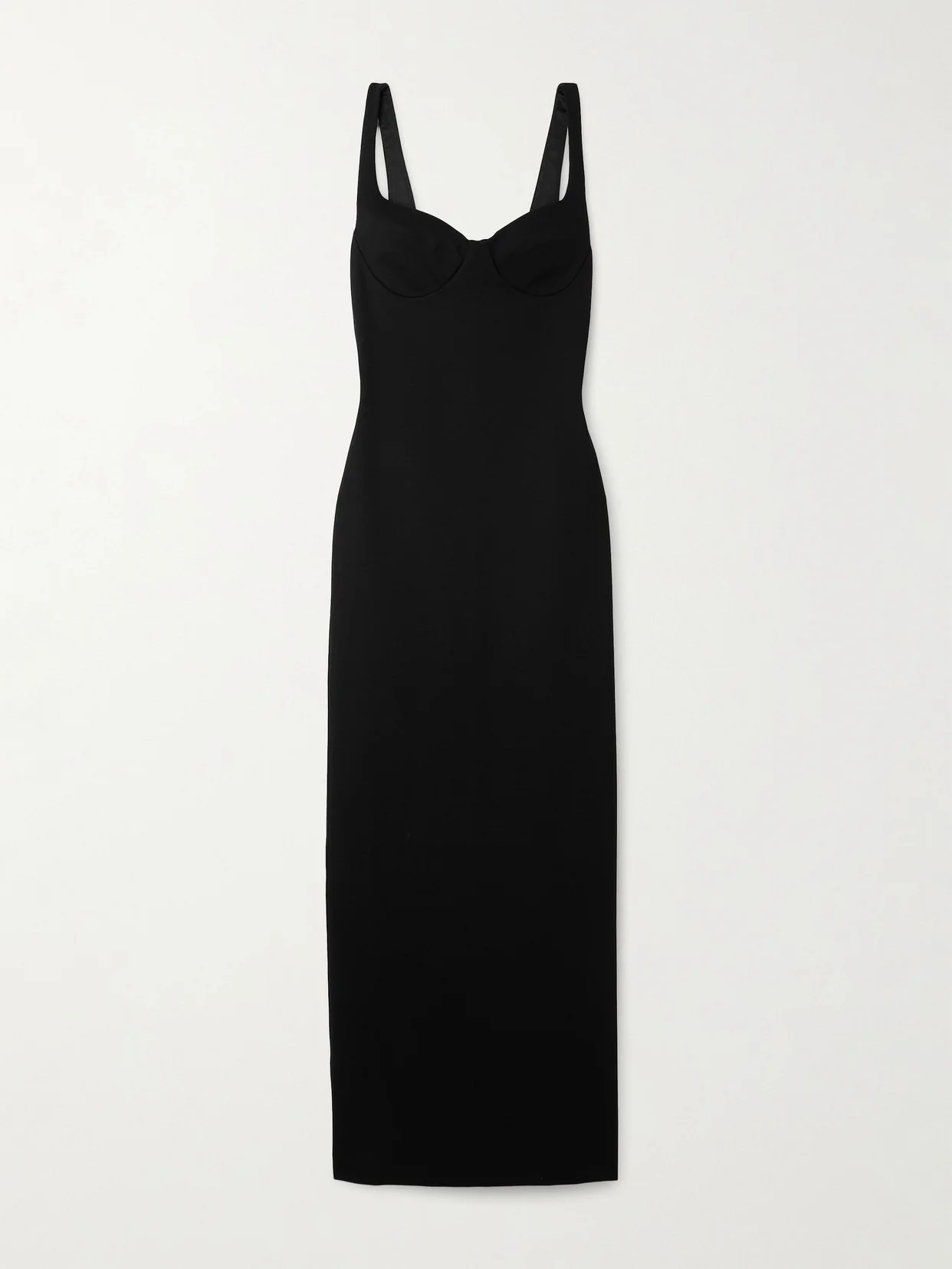 SIMKHAI's 'Cabot' dress is a sophisticated staple you'll wear on repeat. Sculpted from black scuba, it has a lingerie-inspired bustier bodice.
