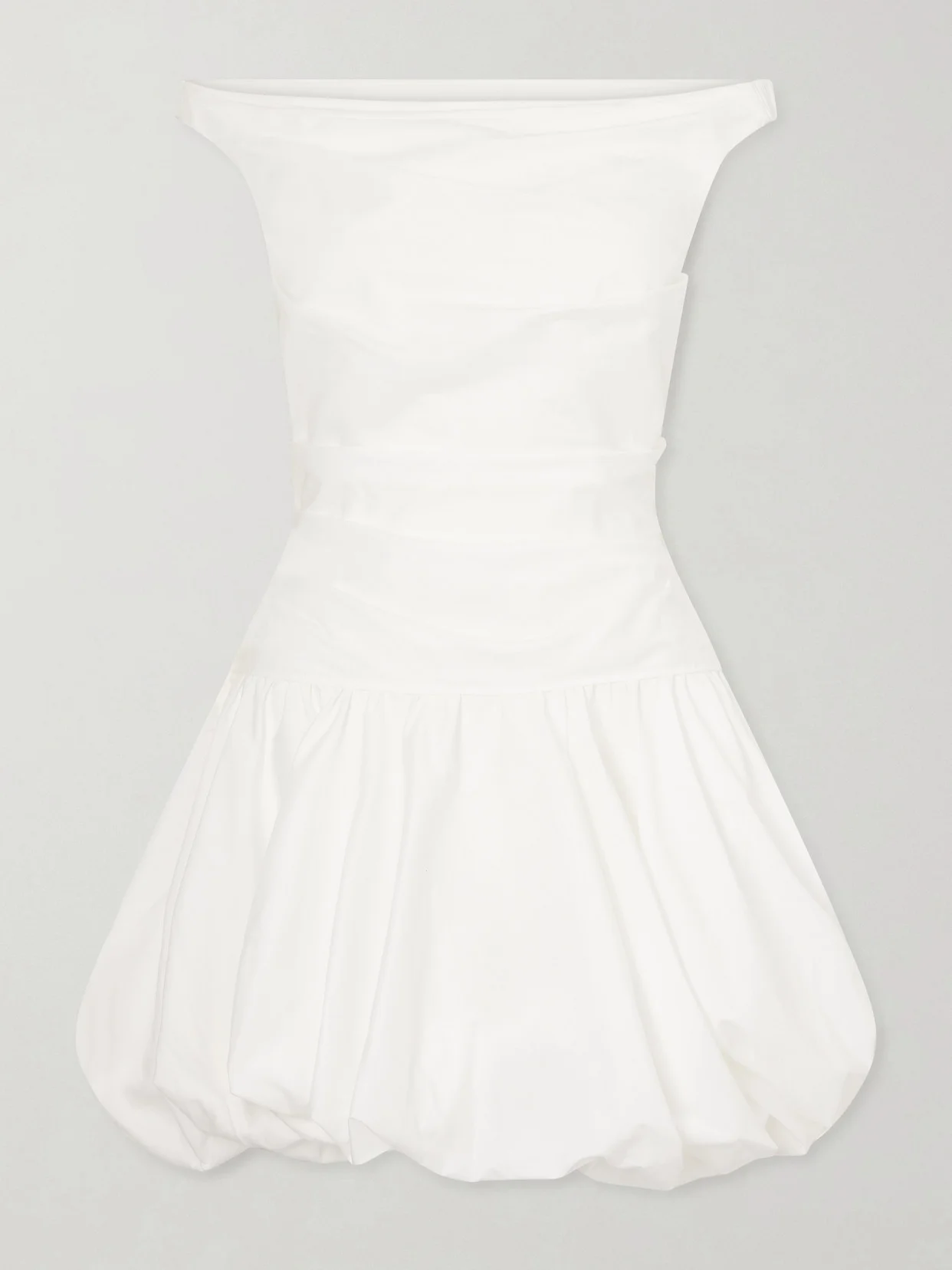 SIMKHAI brings back the '80s bubble hem with this 'Salina' mini dress. It's made from cotton-blend poplin, detailed with an elegant boat neckline and ruched bodice. Wear yours with pearl jewelry.
