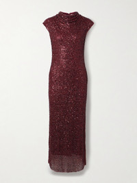 Simkhai's ‘Zaria' dress is elegant and captivating, making it the perfect choice for your next big event. Made from mesh, it's saturated with shimmering beads and sequins and has a draped cowl neckline and cap sleeves.
