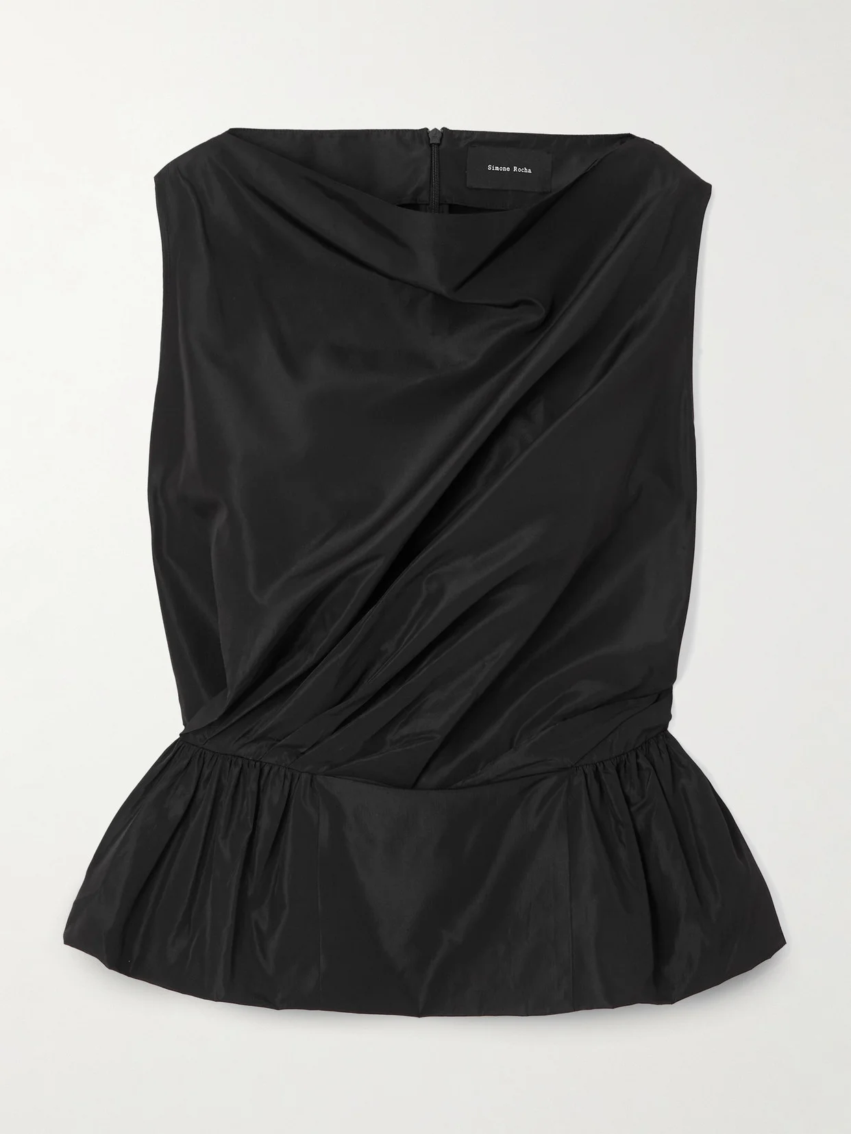 Simone Rocha re-imagines classic femininity with an off-kilter edge, and this top is a perfect example. Made from lustrous taffeta, is plays on proportion with asymmetric draping, a sculpted waist and softly flared peplum hem.