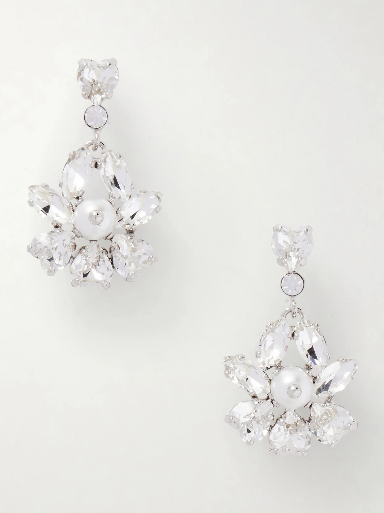 These earrings channel the ceremonial surroundings of Simone Rocha's Spring Summer '26 runway collection, unveiled at London's historic Mansion House. Shaped from silver-tone metal, they suspend light-catching crystal and resin drop pendants that look just like the ornate chandeliers hanging in the building's great halls.