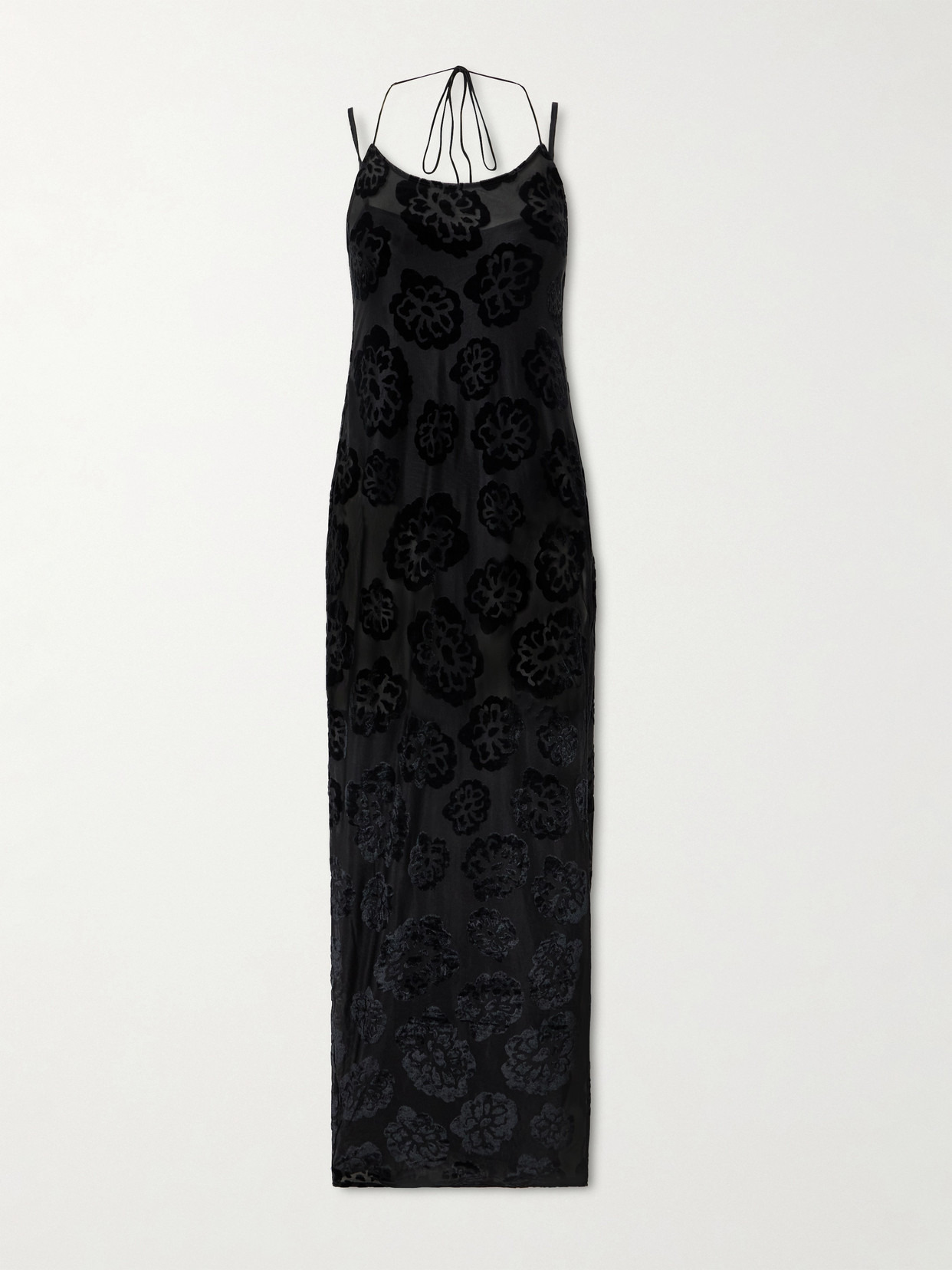 SIR's 'Vittoria' gown is made from stretch devore-velvet patterned with 'Midnight Florals'. It skims over your figure and has a low back and deep slit at the side. Wear yours with the detachable bodysuit for just enough coverage.