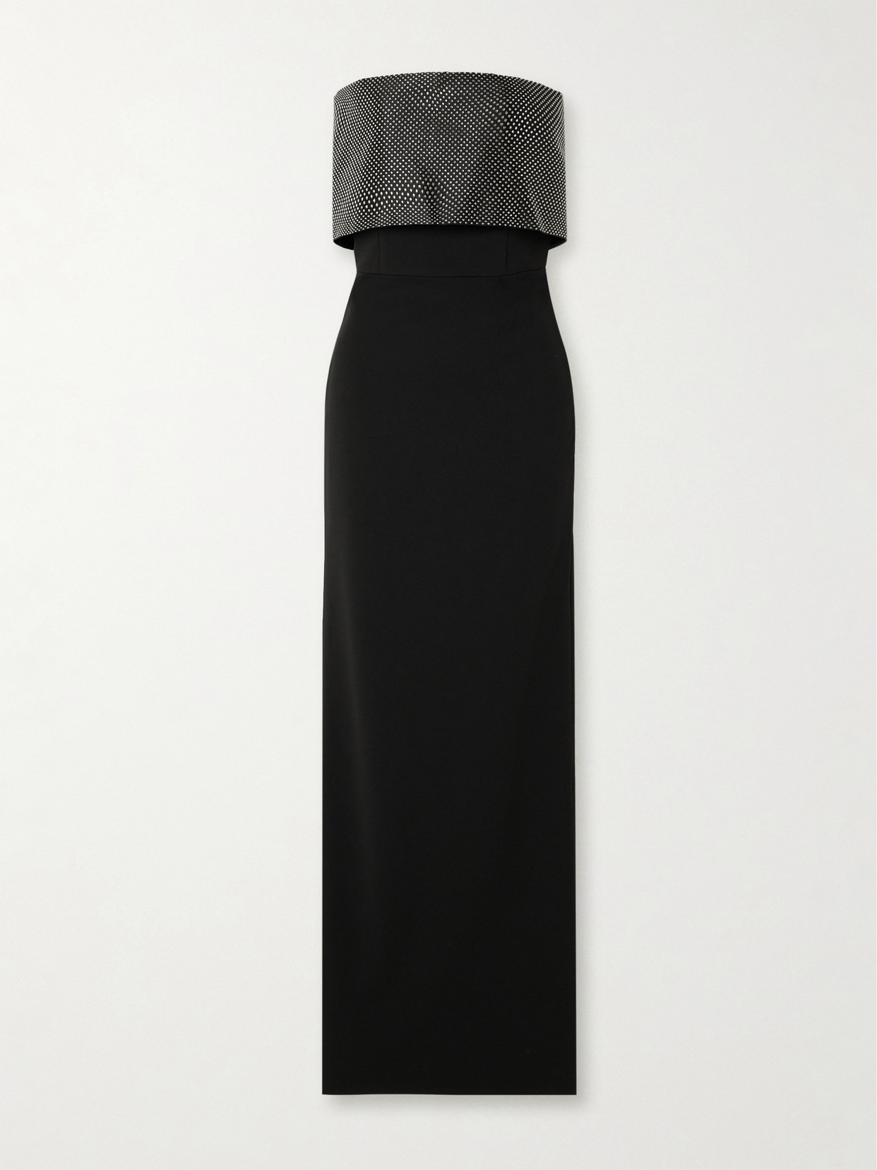 Brandi Strapless Layered Crystal-embellished Satin-twill Trimmed Stretch-cady Gown