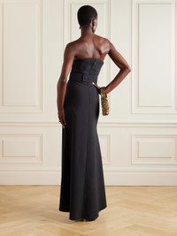Co-founders Laura Taylor and Ryan Holliday-Stevens describe Solace London's collections as "bold; confident and refined". Cut from crepe, this 'Ember' dress has a curved strapless bodice and cinches at the belted waist before falling to a high-low hem.