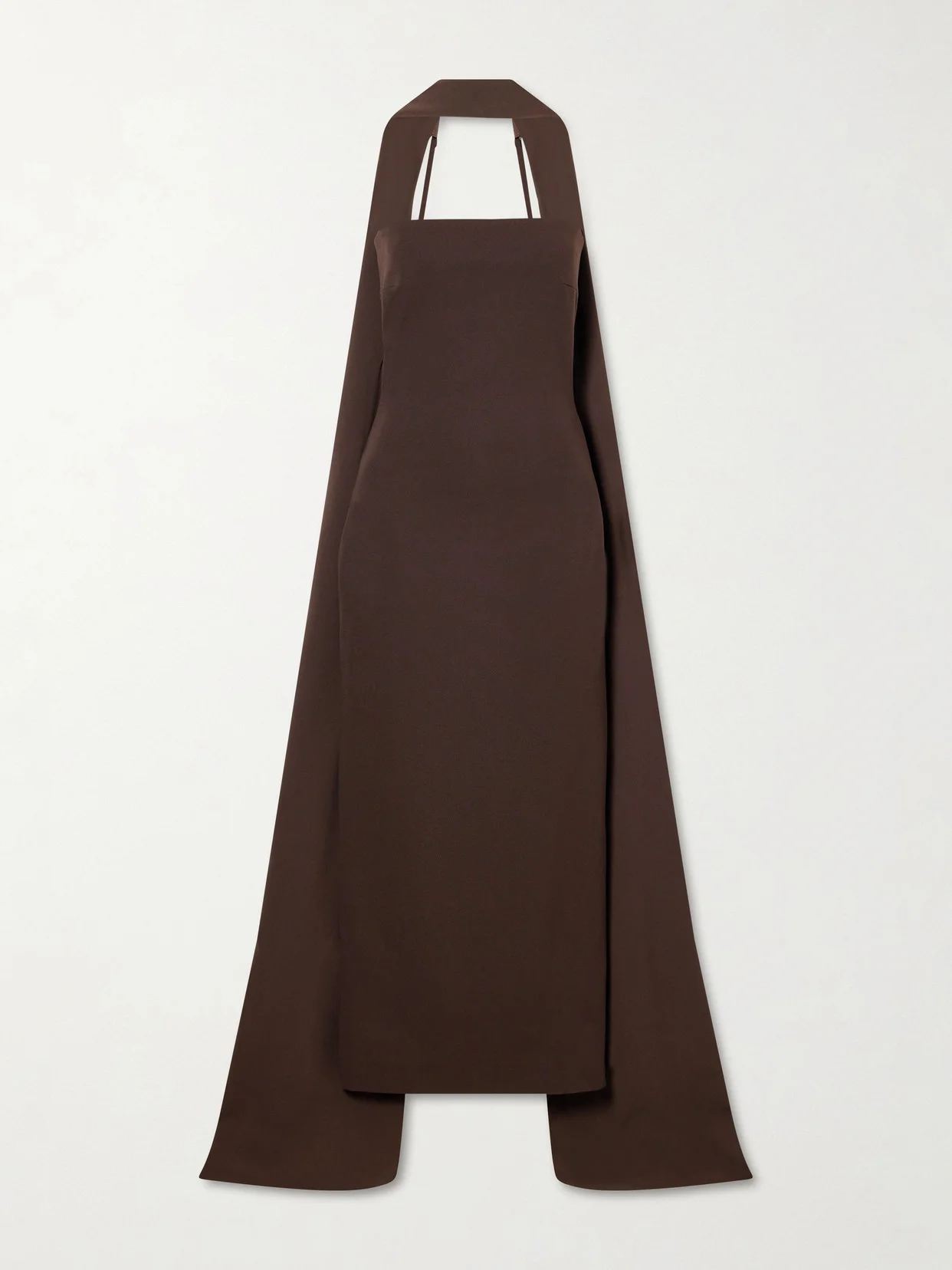 Solace London's 'Martine' dress has a refined feel. Cut from crepe in a streamlined silhouette, it falls from a strapless neckline framed by an elongated scarf that trails down the back past the midi hem.