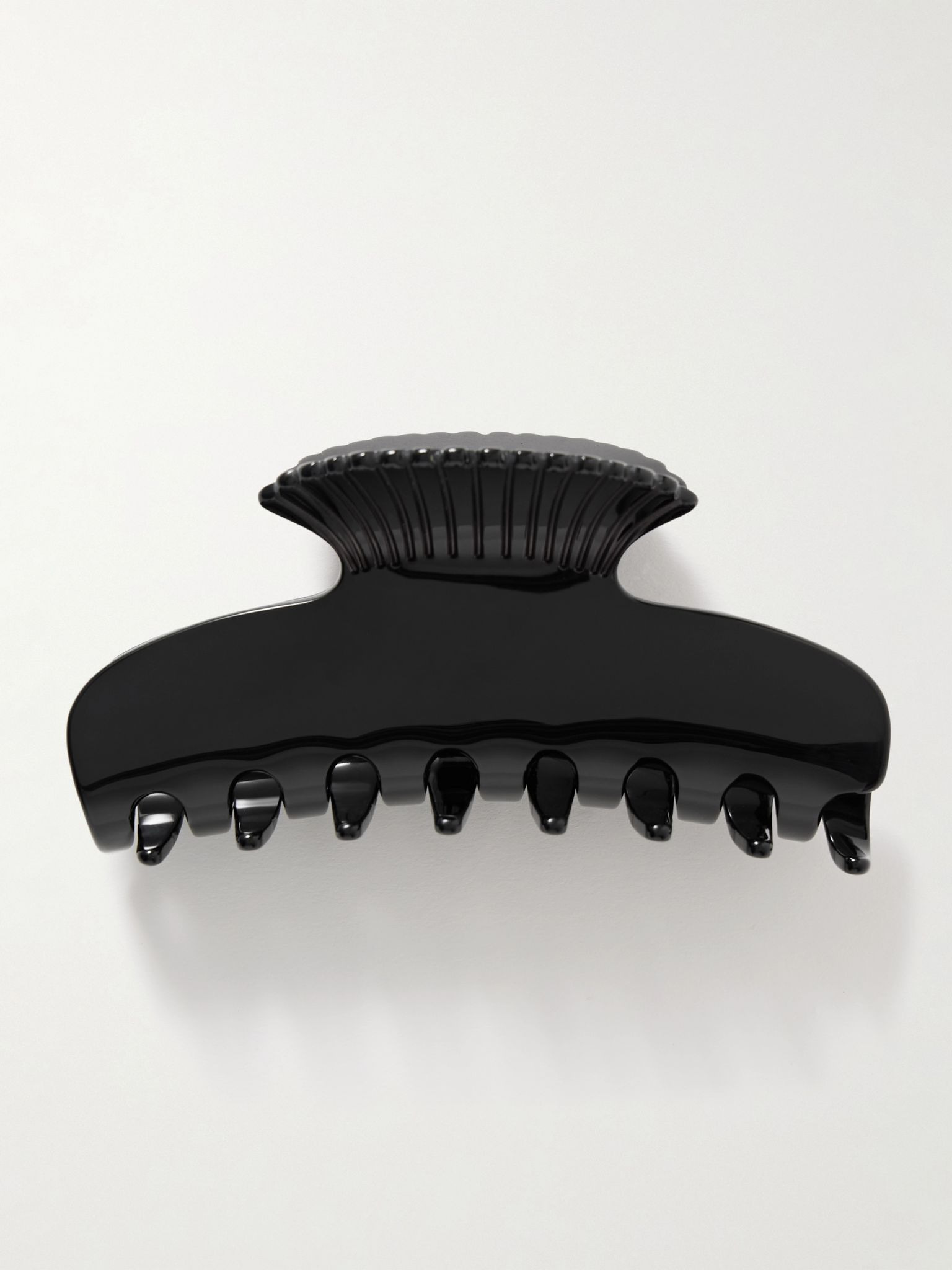 Sophie Buhai's claw clip is intricately etched to depict the look of a seashell. It's crafted from glossy acetate in classic black. Details & Care - Black acetate
