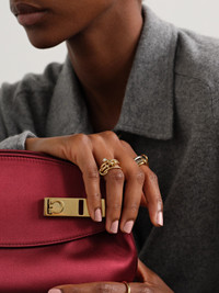 Spinelli Kilcollin describes its aesthetic as "clean; conceptual and innovative" - three words that certainly come to mind with this 'Piera' ring set. Handmade from 18-karat gold, it includes three connected bands in the signature 'Galaxy' design and a single diamond charm. Wear yours stacked or split across your fingers.