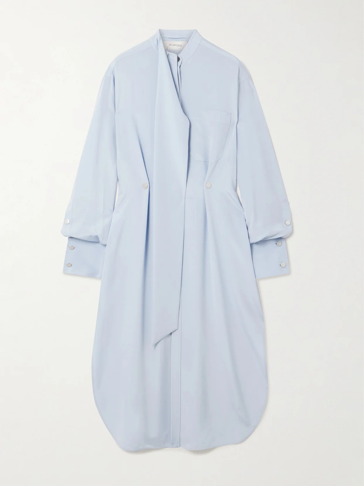 Sportmax's collections are rooted in the "principles of tailoring;" re-imagining core staples with bold elements. Cut from silk-blend crepe de chine, this 'Esopo' dress has a loose shirt silhouette with a scarf-detailed neckline and silver-tone studs to shape the waist. Wear it solo or style it partially unbuttoned over pants.