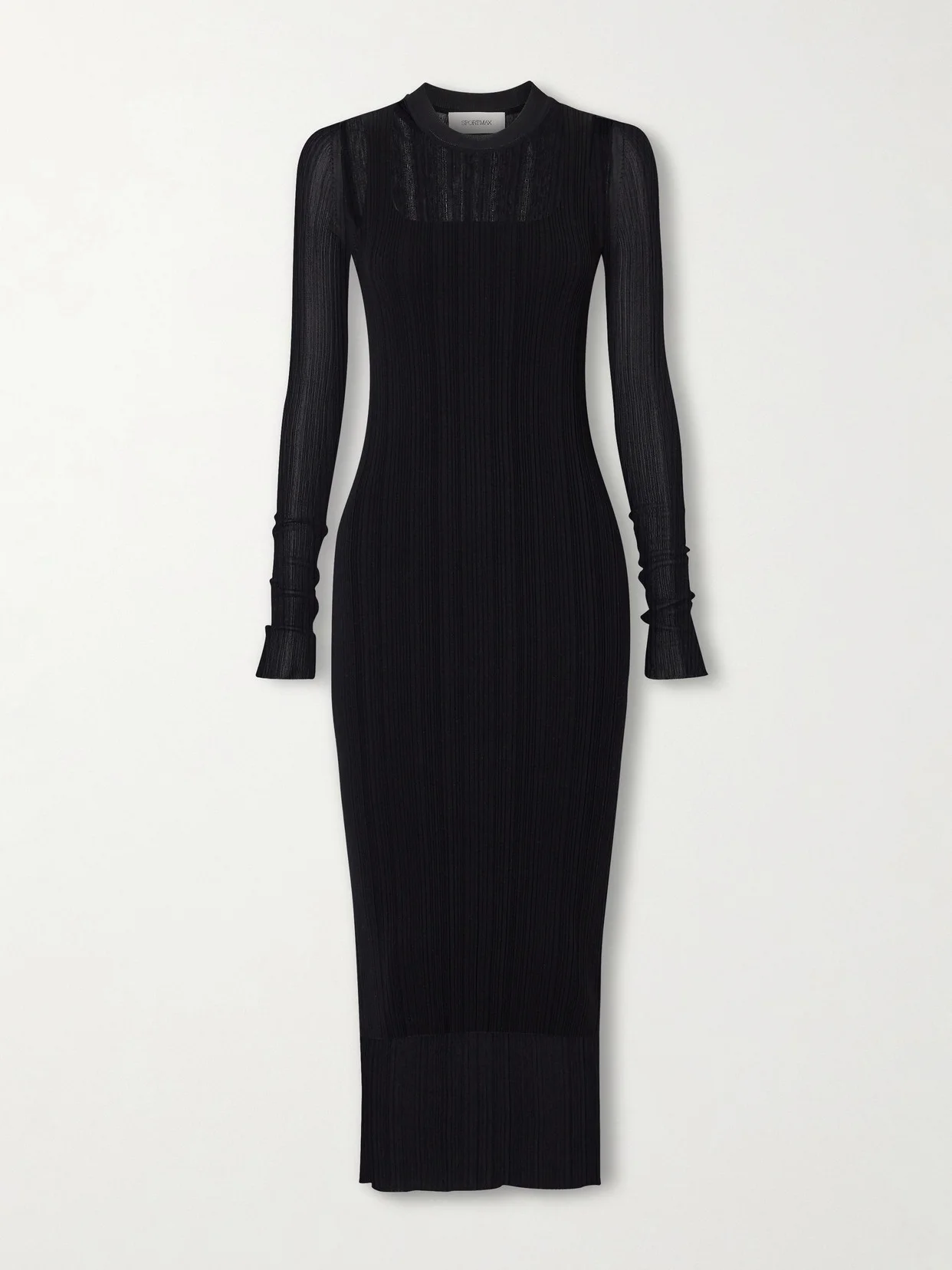 SportMax's dress is paneled with plisse-tulle to create a layered trompe-l'oeil effect. Rib-knitted from jersey, it has a chic square neckline and hugs your figure all the way to the hem.