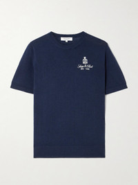 Vendome embroidered merino wool T-shirt Navy