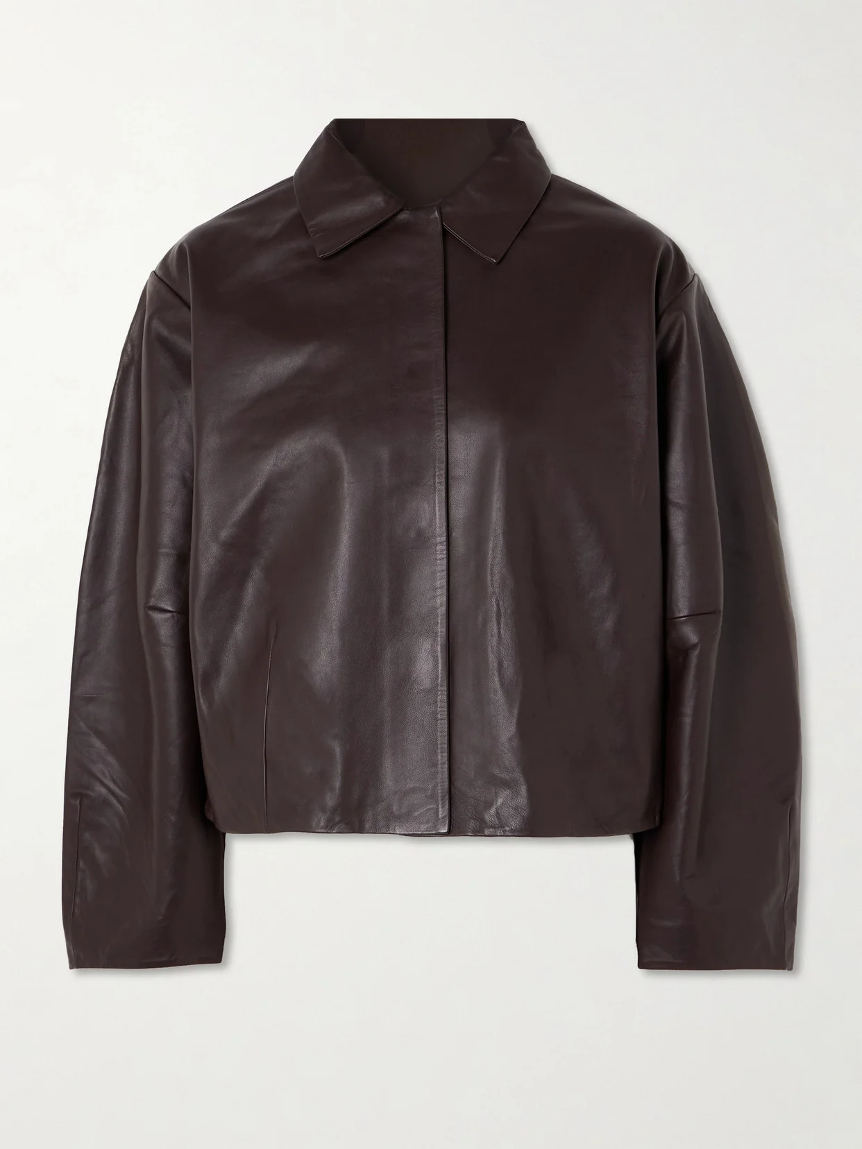 Designing with a "less is more" philosophy, ST. AGNI's collections make for timeless investments. This jacket is crafted from buttery leather in a relaxed, cocooning shape and fastens with magnetic buttons. Wear yours with a tank and jeans or over a slip dress. Lower-Impact Materials. This product is made using at least 50% lower-impact materials or ingredients. Find out more about our NET SUSTAIN criteria here.