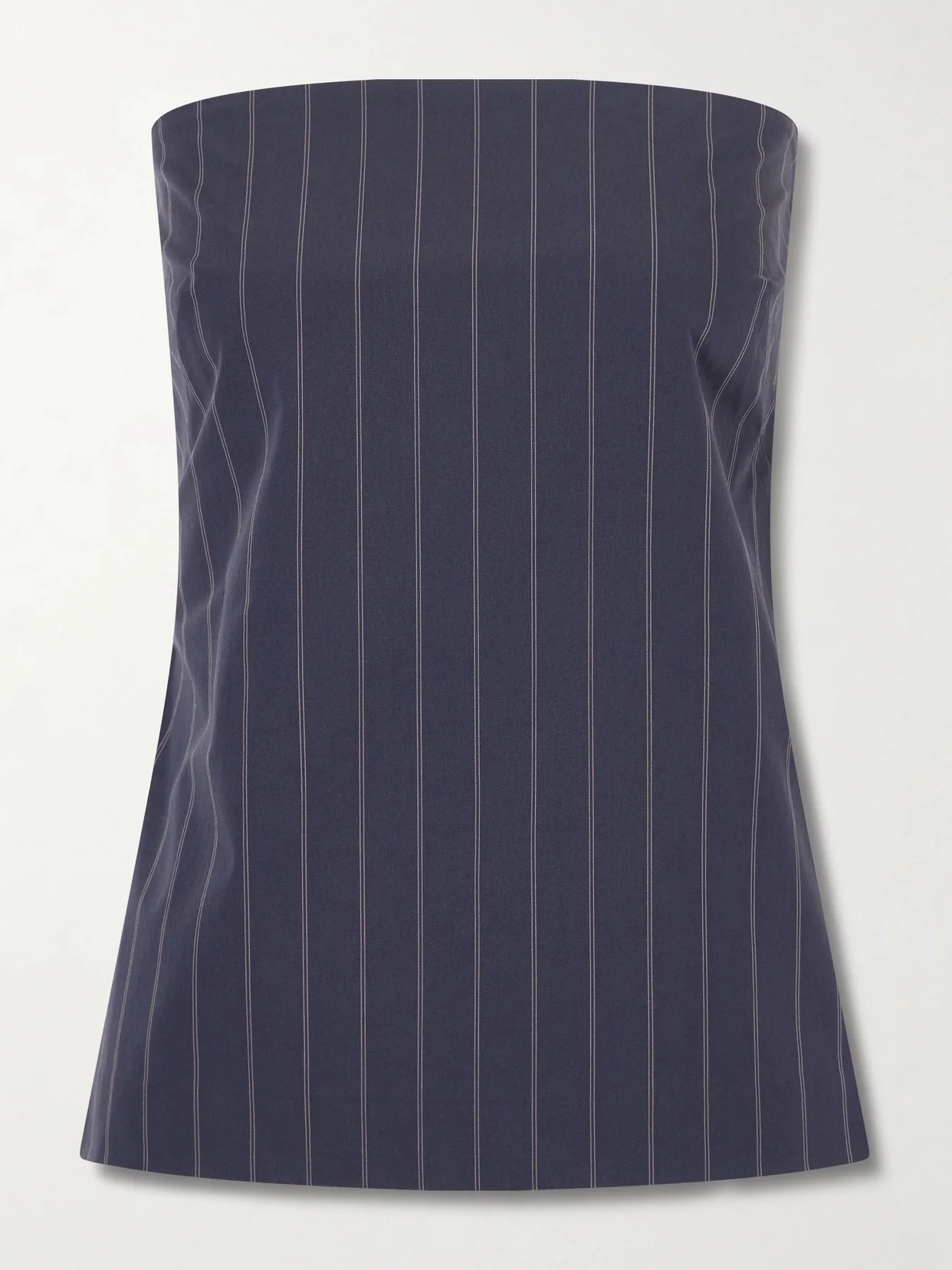 Strapless Open-back Striped Cotton-blend Top
