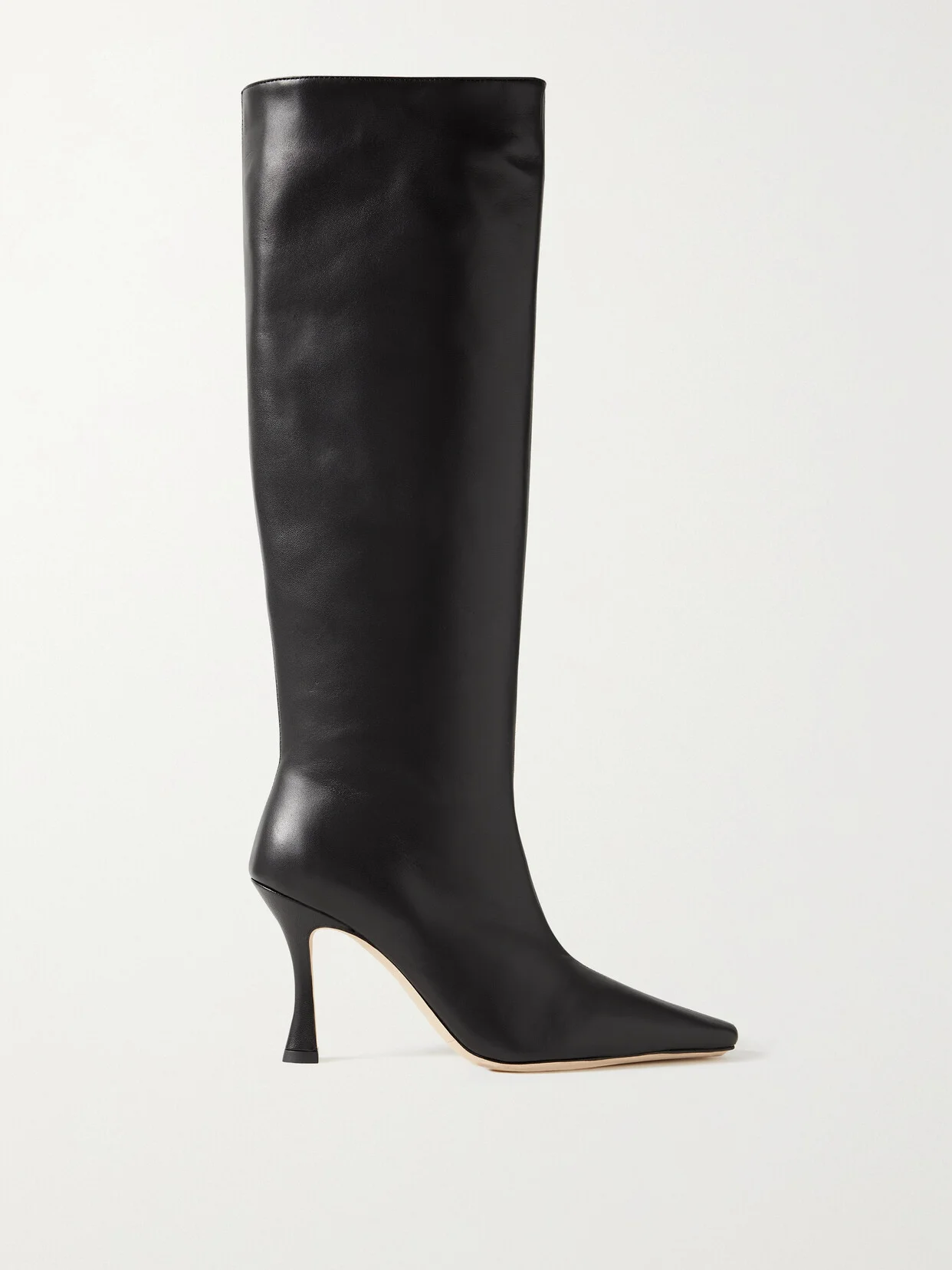 STAUD's 'Cami' knee boots are minimal and refined, so you can easily dress them up or down. Made from supple black leather, they have classic almond-shaped toes and fluted 85mm heels.