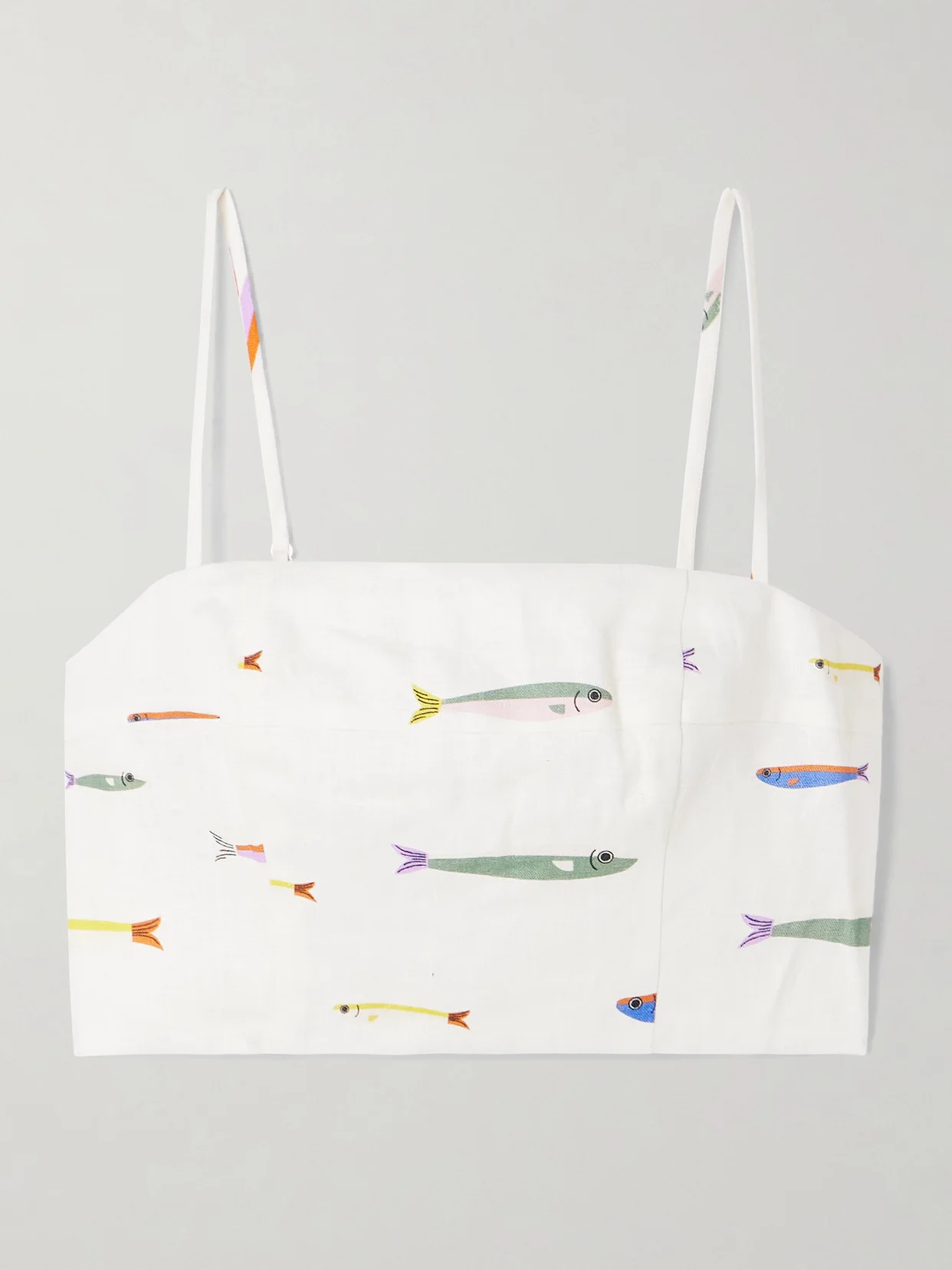 STAUD's cropped 'Federico' top is printed with the same colorful fish motif as the matching skirt - together, they make a fun coordinating set for vacation. It's cut from breathable linen that will keep you cool and has slim, adjustable straps.