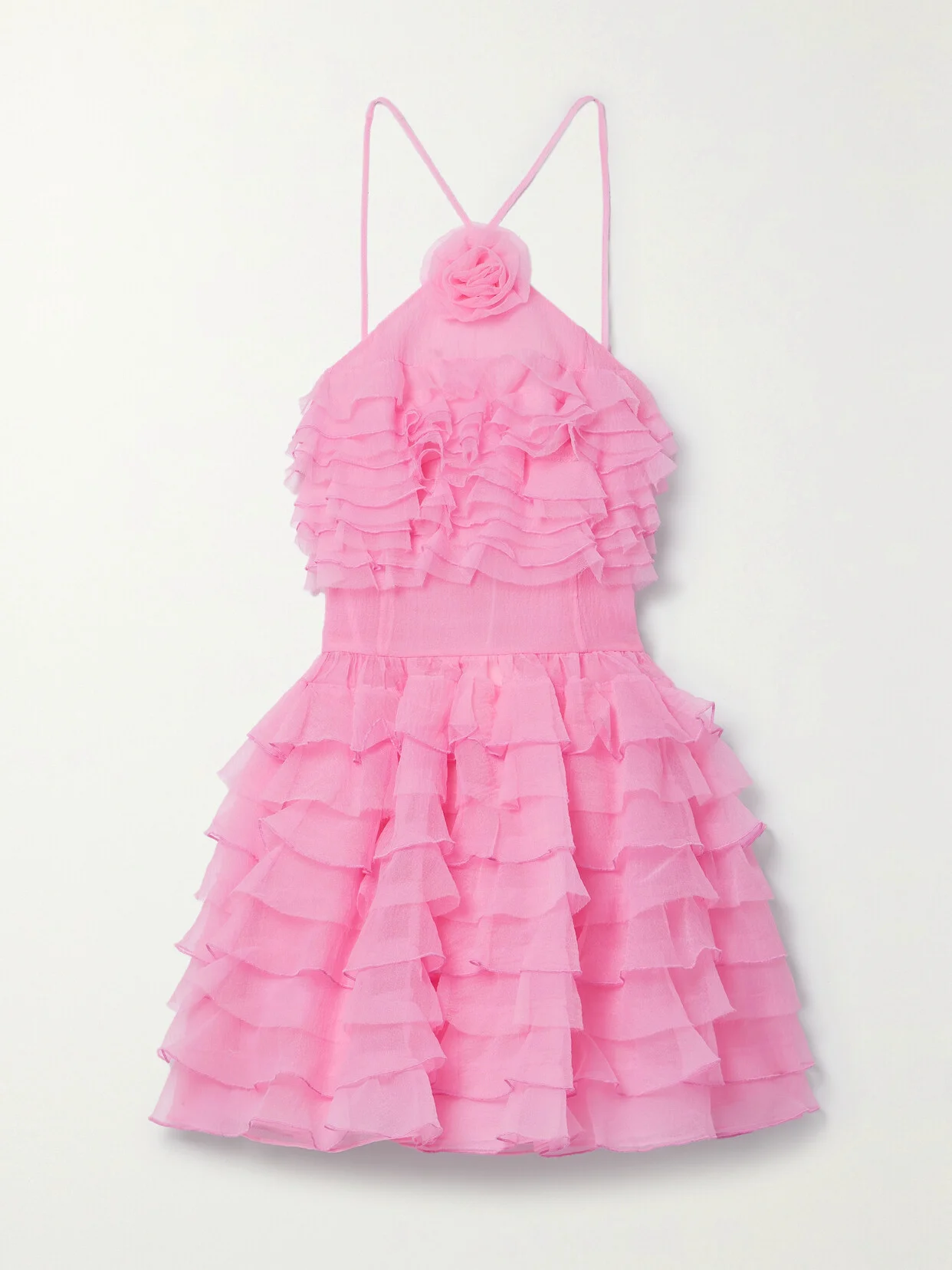 There's a soft, romantic feel to STAUD's dress, thanks to the ruffled layers and pretty 'Tulip' shade. It's made from wispy organza and appliqued with a blooming rosette at the neckline. Style yours with heels and a matching clutch for special occasions.