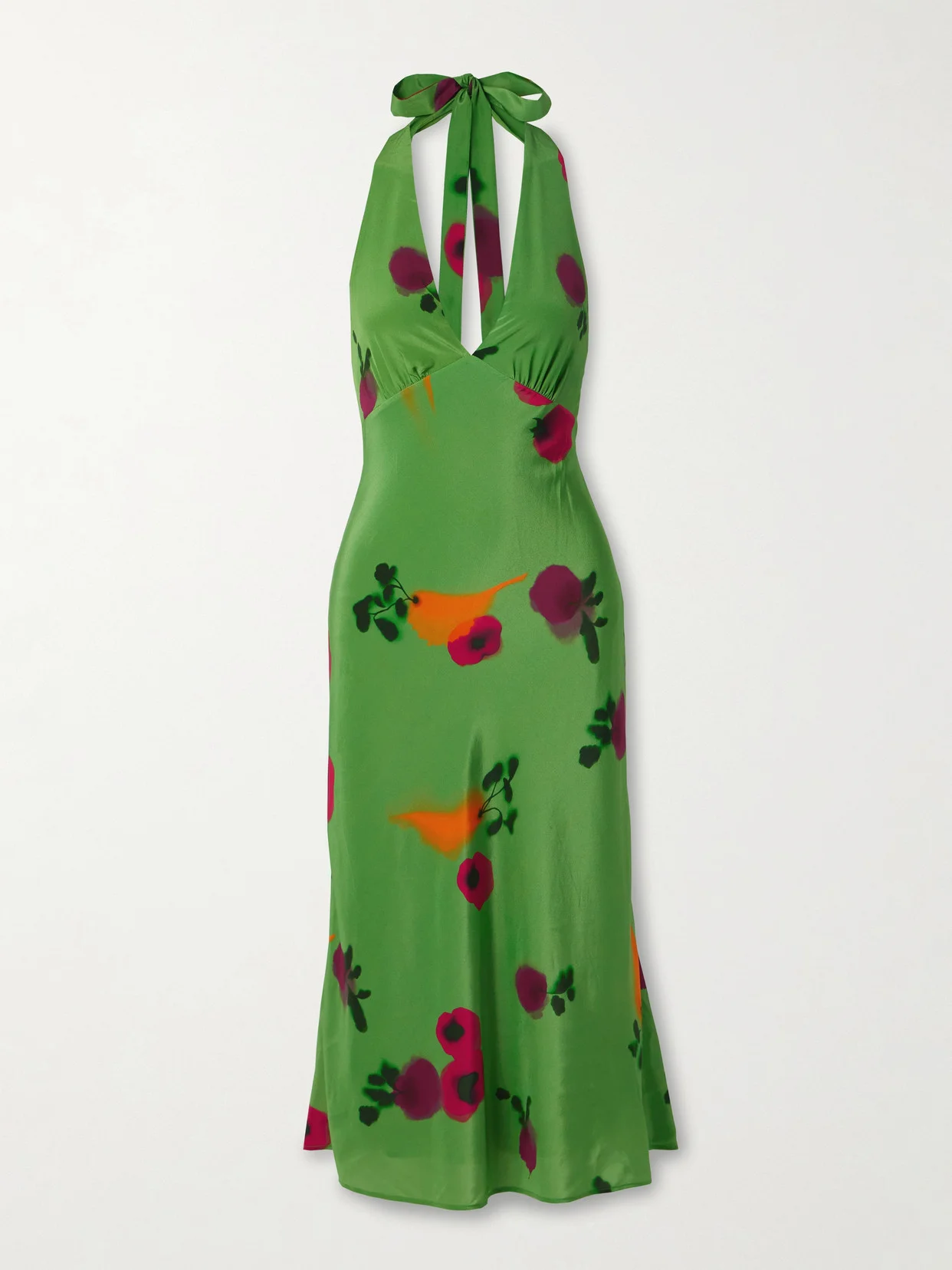 Lucca Printed Silk-crepe Halterneck Midi Dress
