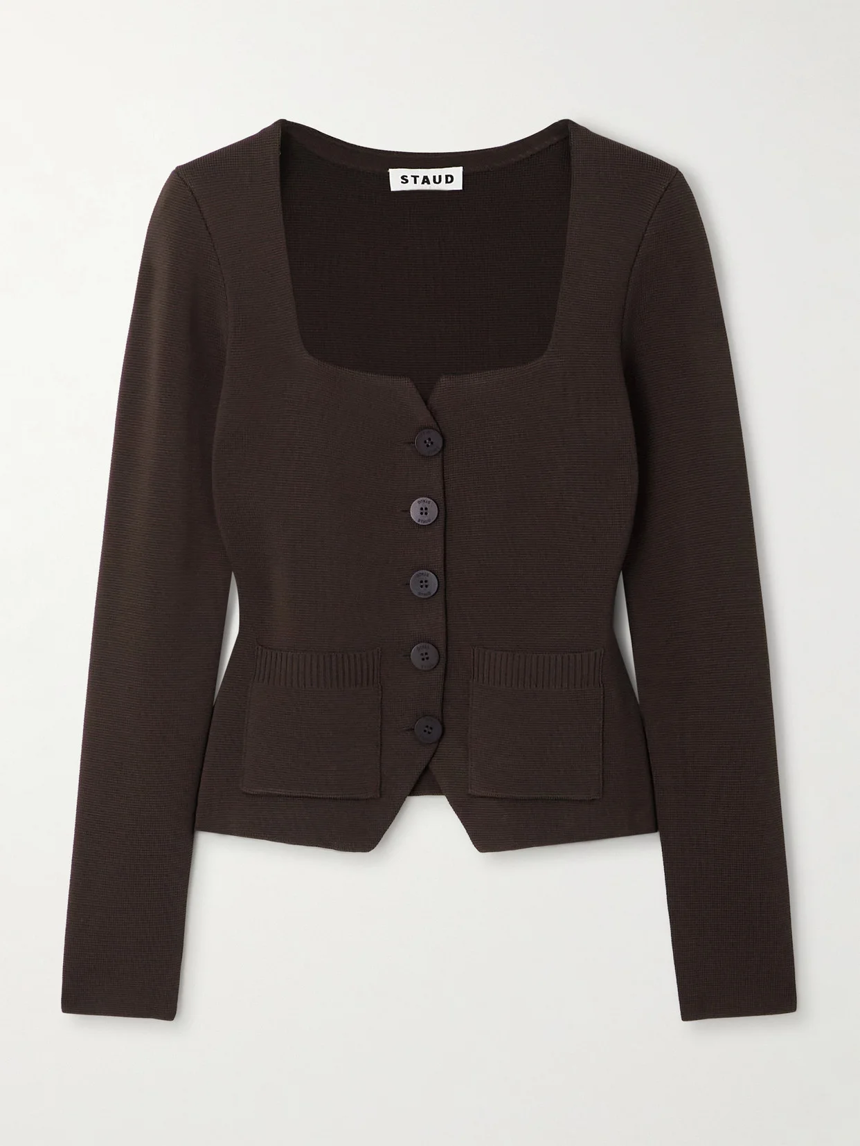 STAUD's 'Rachela' cardigan has a precise fit - the sharp lines are reminiscent of tailoring. It's knitted from smooth viscose and nylon-blend with a notched square neckline and earthy marbled buttons.