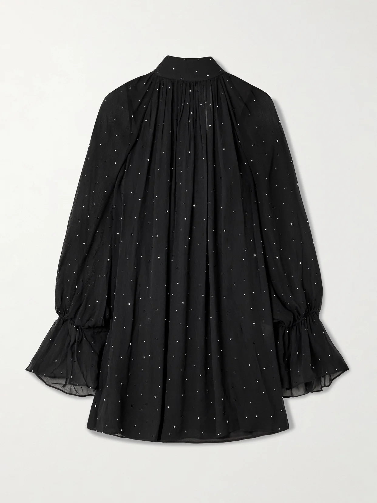 Roux Crystal-embellished Gathered Crepon Mini Dress