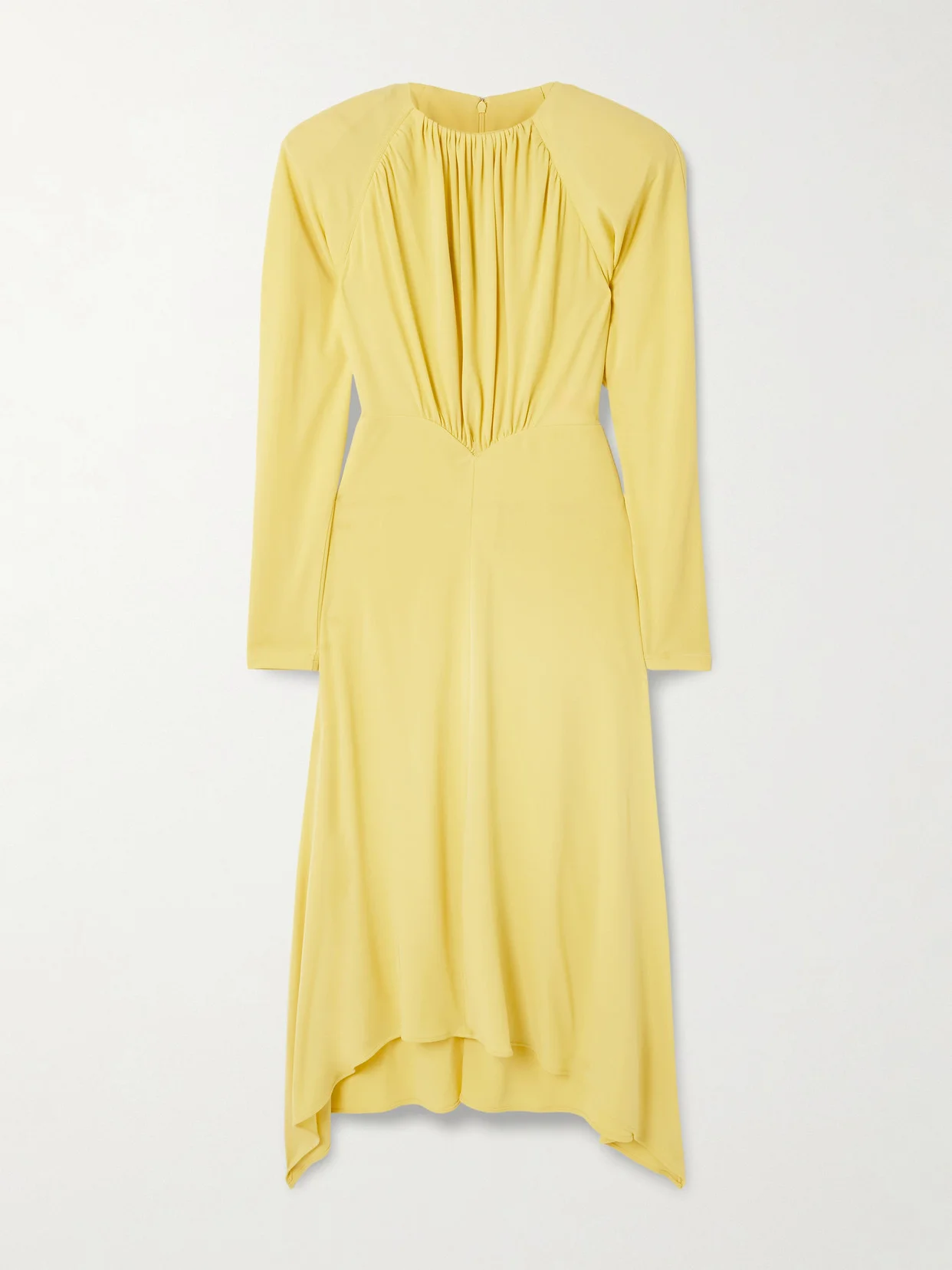 Stella McCartney puts great consideration into its use of fabrics: this crepe midi dress is made from fibers derived from the pulp of trees in responsibly managed forests. It's been made in Italy with a pleated front and an elegant midi skirt that moves beautifully. Lower-Impact Materials. This product is made using at least 50% lower-impact materials or ingredients. Find out more about our NET SUSTAIN criteria here.